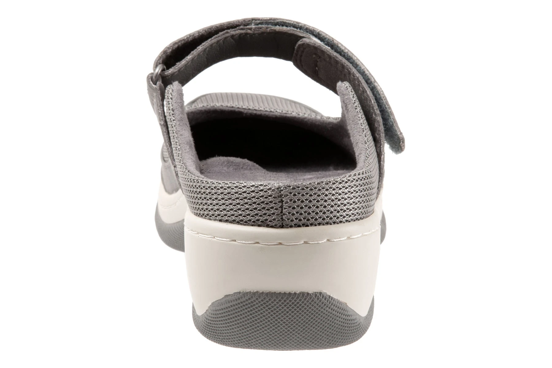 Softwalk Arcadia is an adjustable and versatile Mary Jane clog. A mesh leather upper, removable footbed, cushioned insole and PU outsole makes these clogs. An instep hook and loop strap provides support, while a memory foam cushioned midsole provides added comfort.
