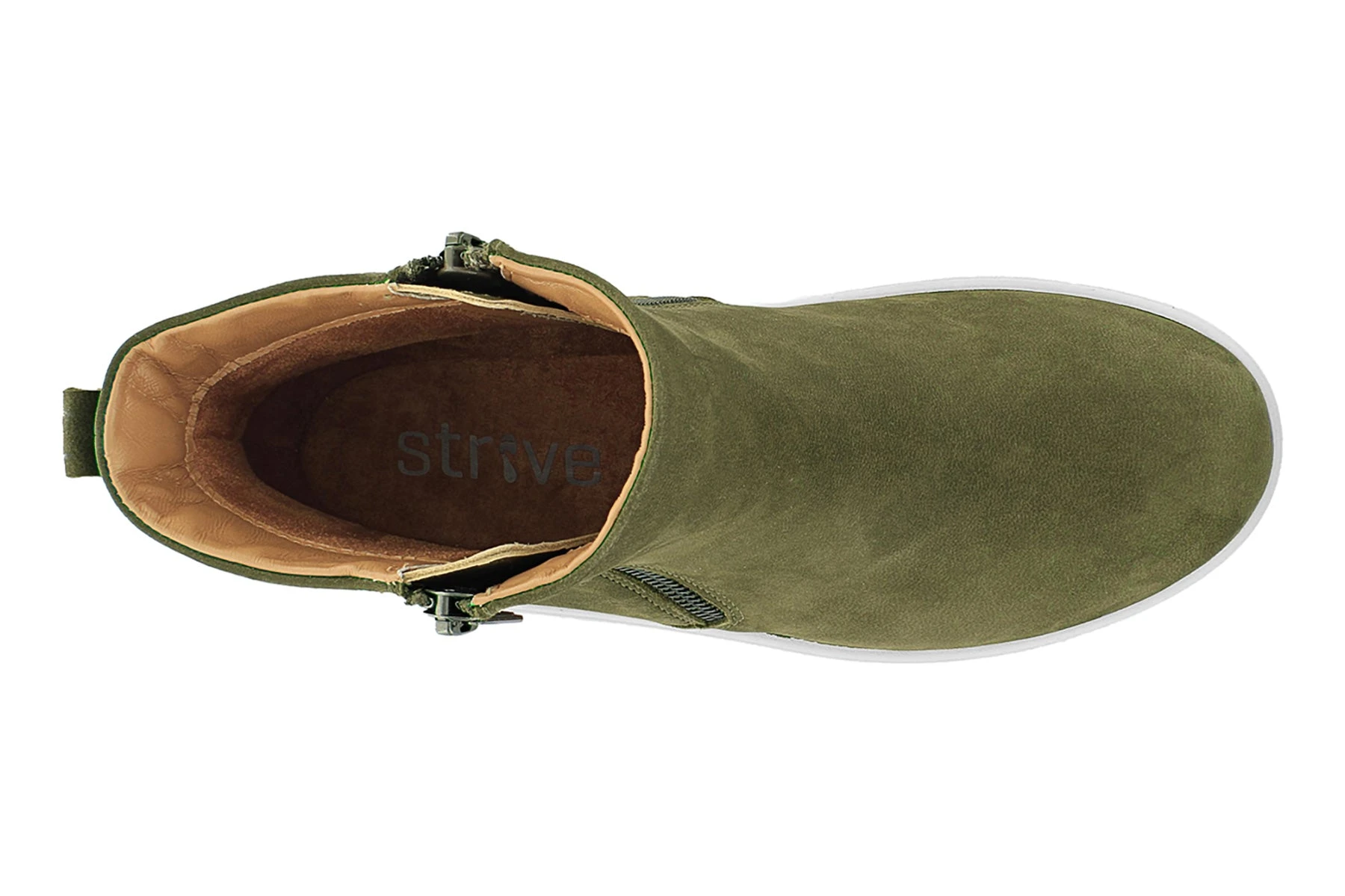 Strive Bamford II is a stylish and cozy ankle boot. These sturdy shoes have leather uppers, zippered side closure, back pull tab and EVA and rubber outsole. A raised round toe silhouette, natural leather sock footbed and microfiber cushioned lining will make these boots essential cold weather footwear.