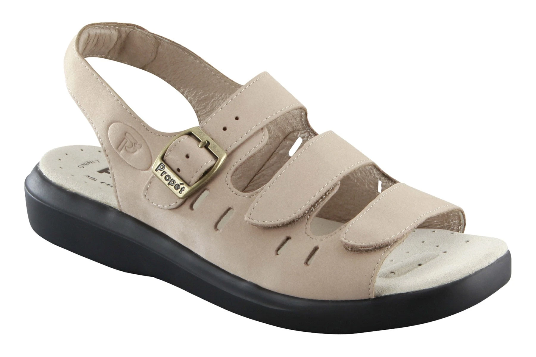 Tackle the day in casual comfort in the women’s Propet Breeze Walker sling-back sandal. Supple, full-grain leather upper and lining offer cushioned breathability. Three adjustable hook and loop straps across the vamp provide a secure and customized fit just where you need it. The lightweight and flexible outsole provides superior traction and stability, ideal for extended wear.