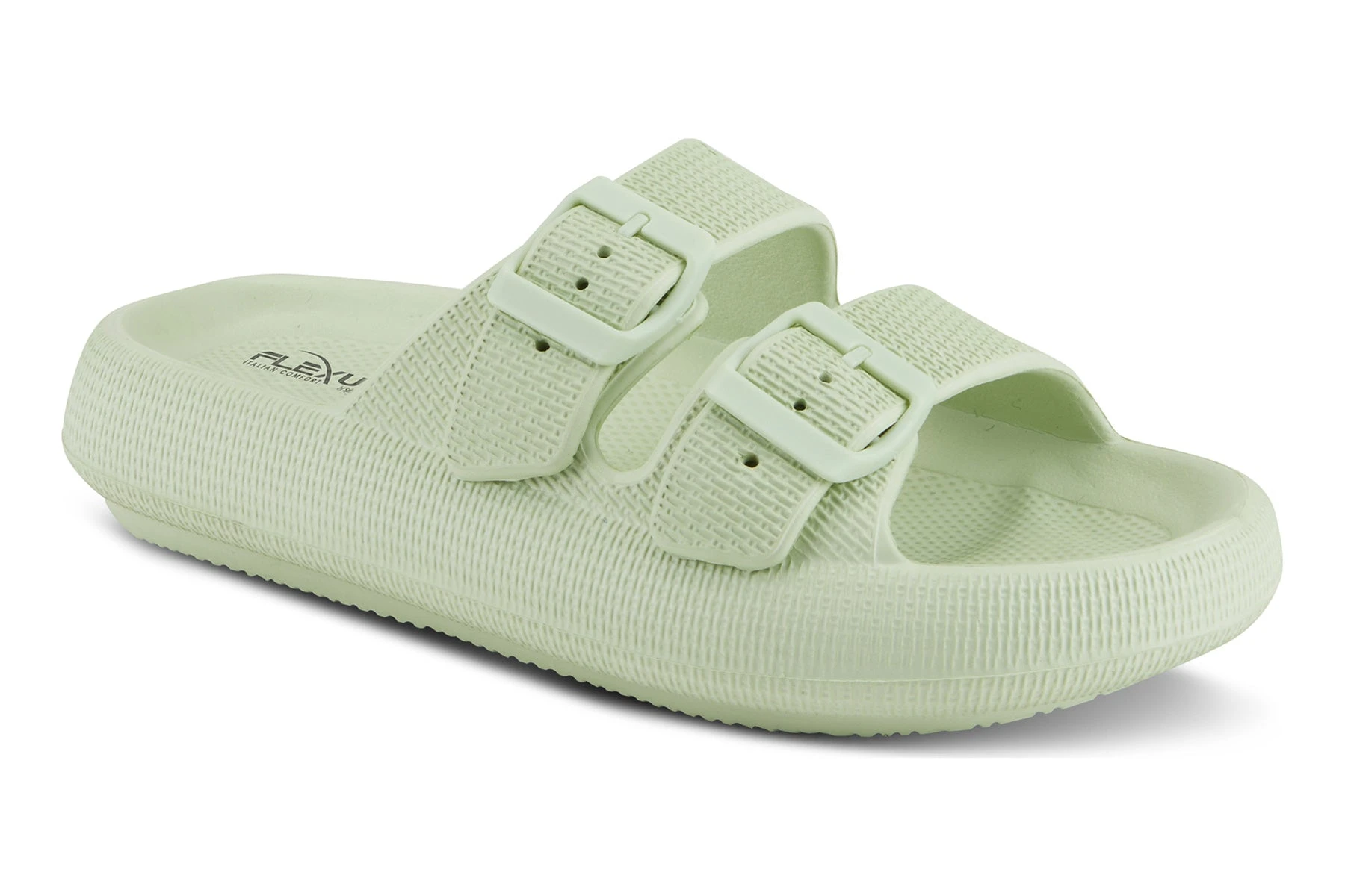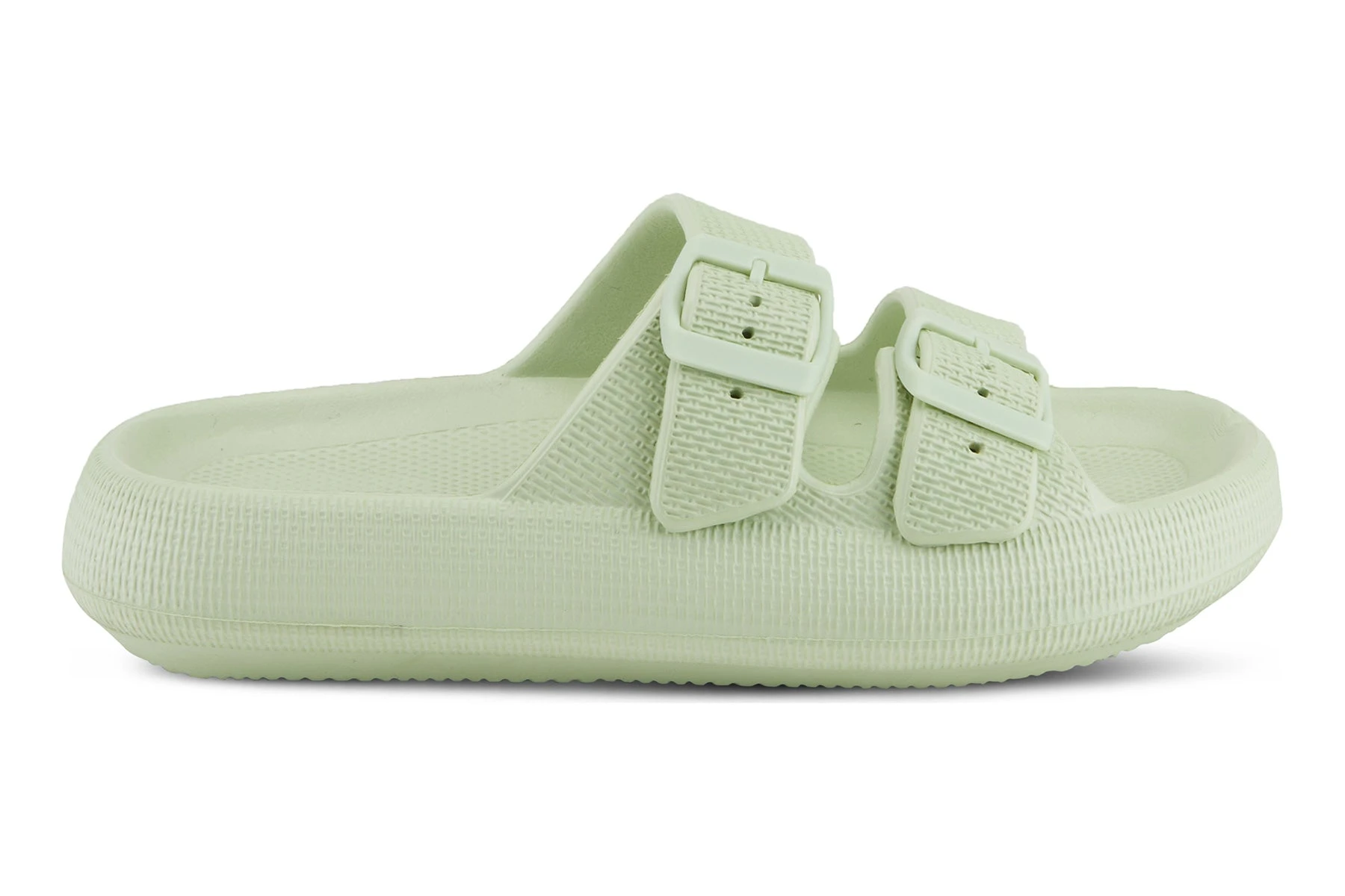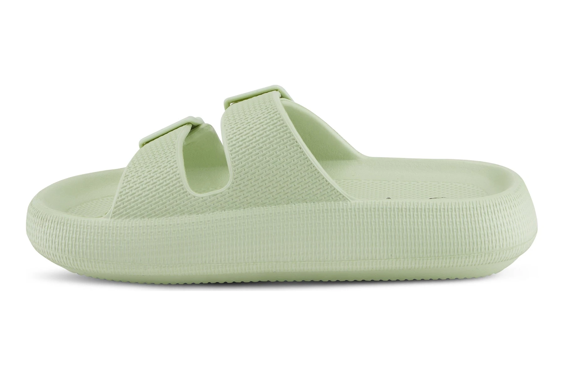 Trendy thick cushiony waterproof slides featuring 2 straps and an adjustable buckle with a flexible and lightweight sole that make you feel like you’re walking on a cloud.