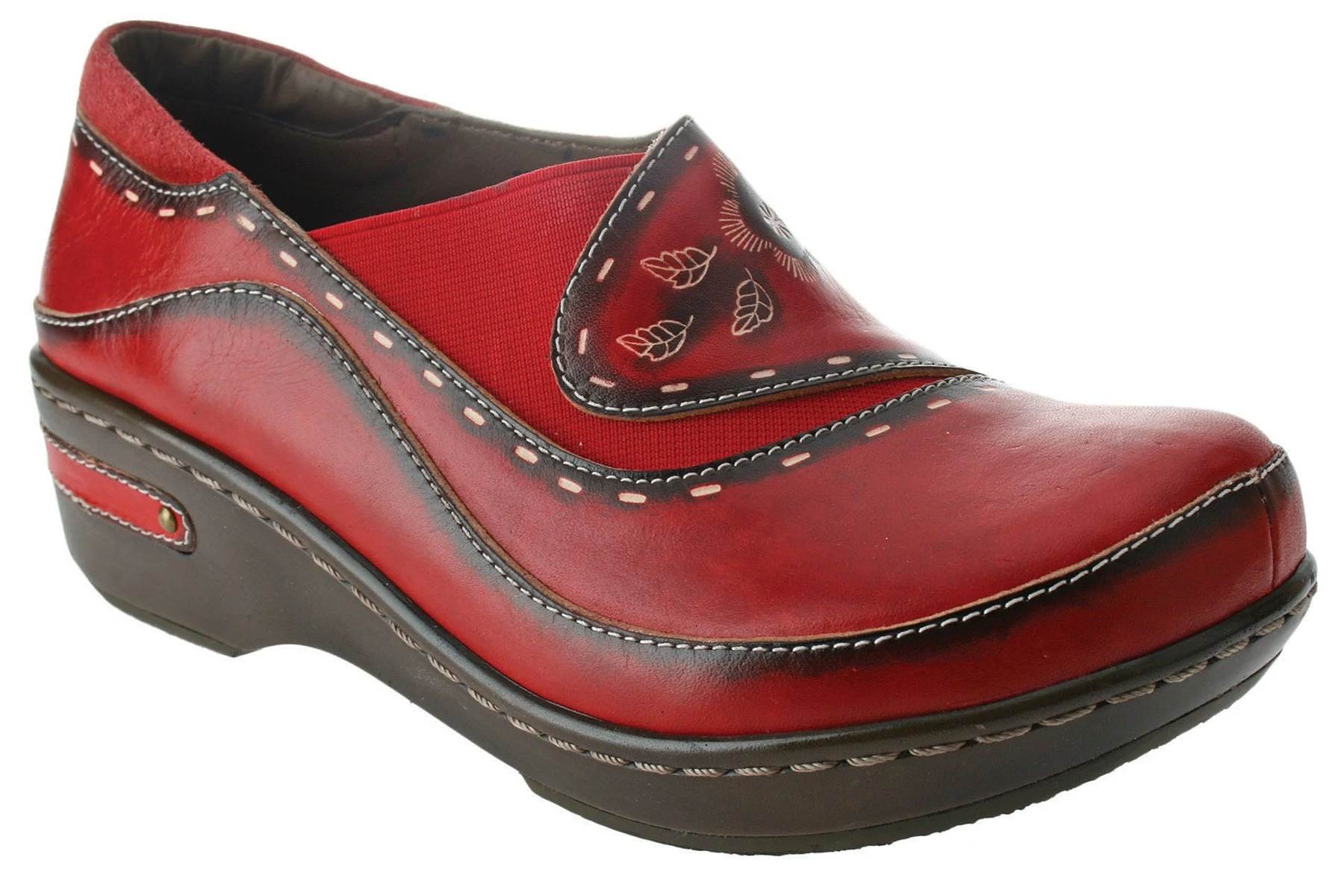 The women’s Spring Step Burbank clog is hand-painted with intricate stitching for added flair. Stretch material along the vamp provides a flexible and more comfortable fit, while the polyurethane and rubber outsole delivers traction for all-day wear.
