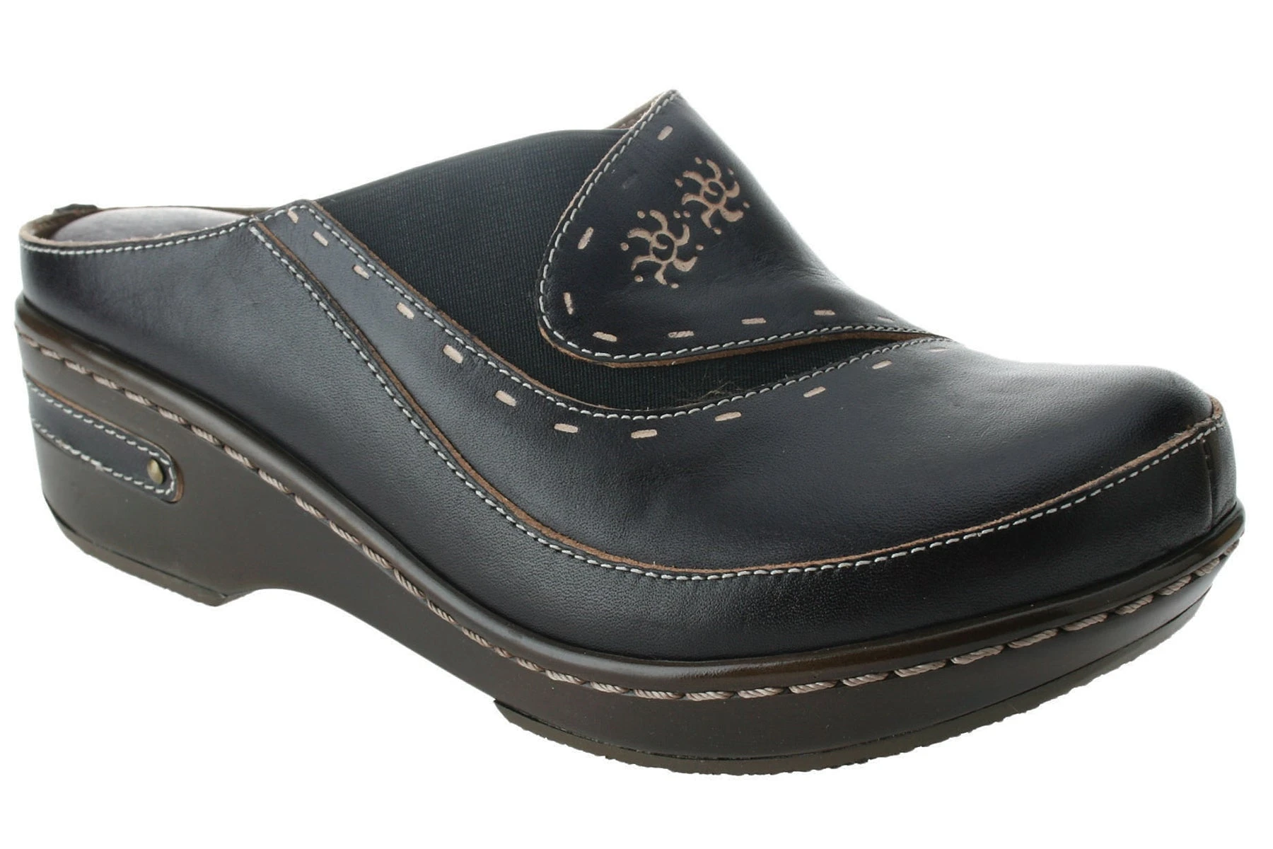 The women’s Spring Step Chino clog is constructed with stitched leather uppers adorned by laser etching along the vamp for added interest. Stretch material on the instep allows for a flexible and more comfortable fit for all day activities.