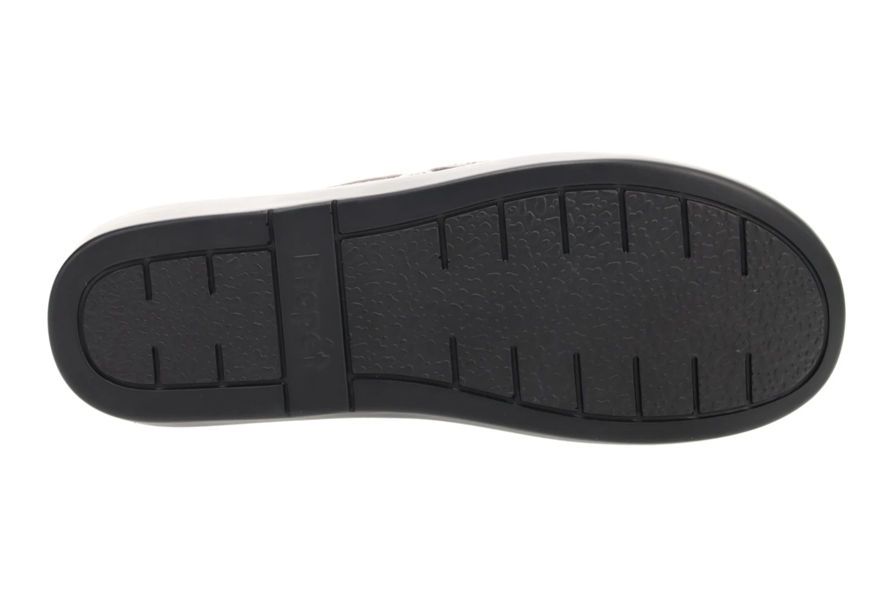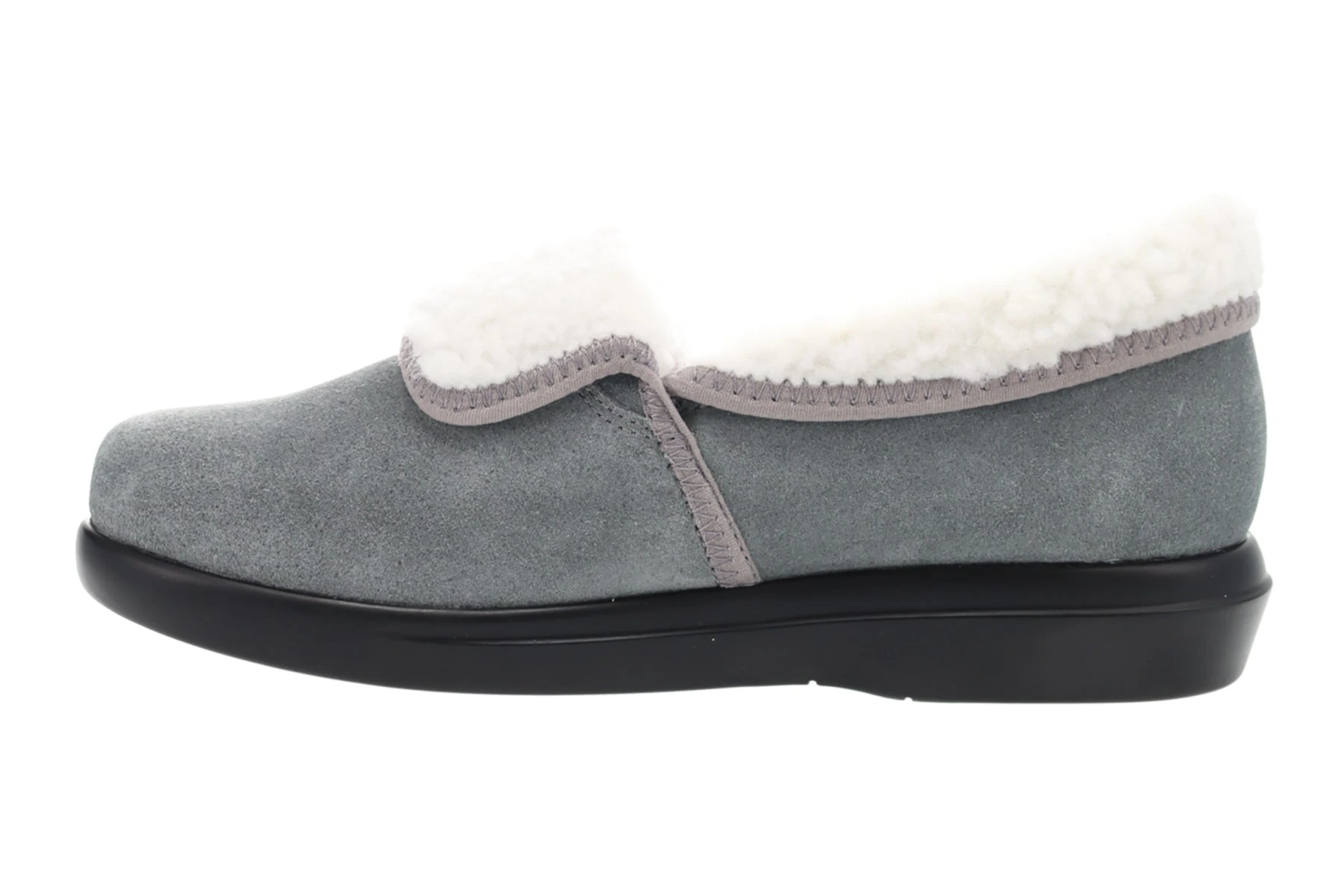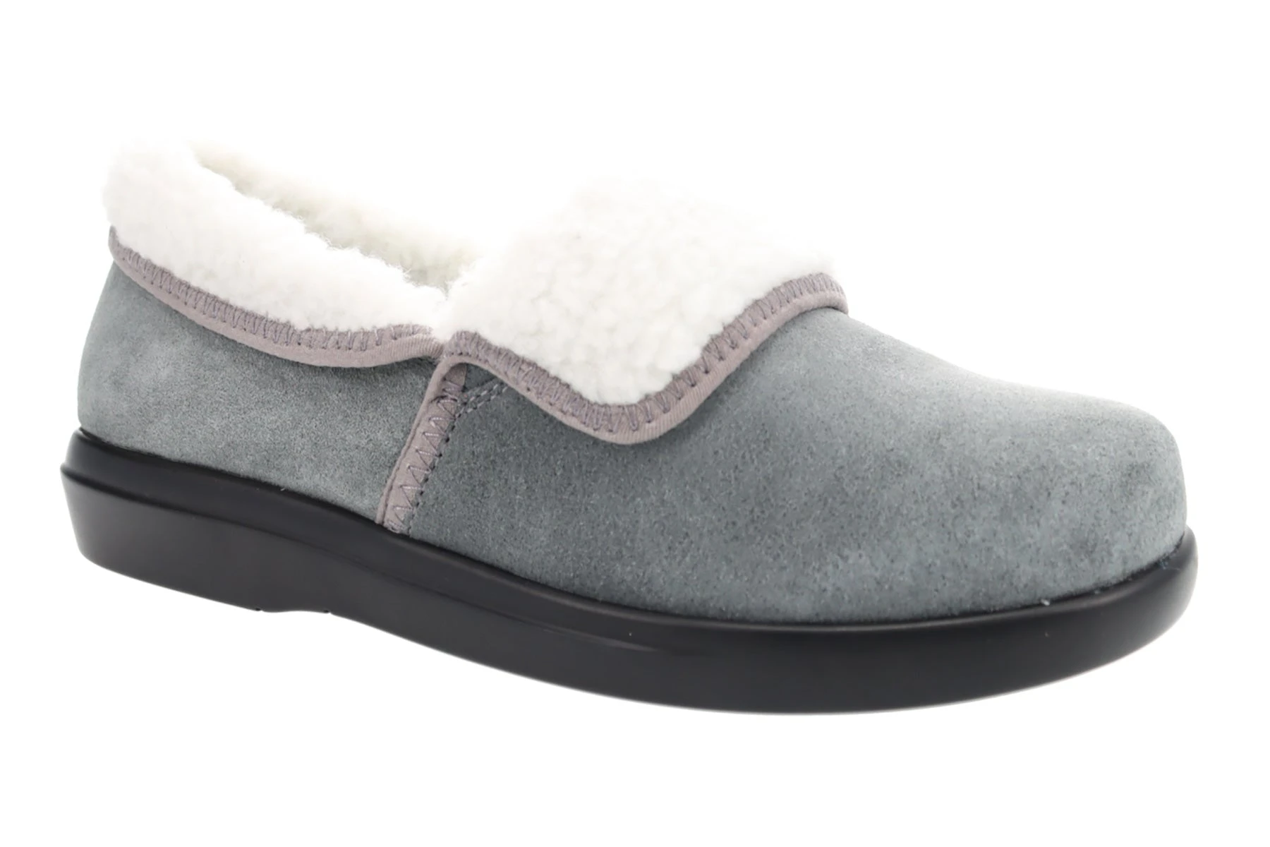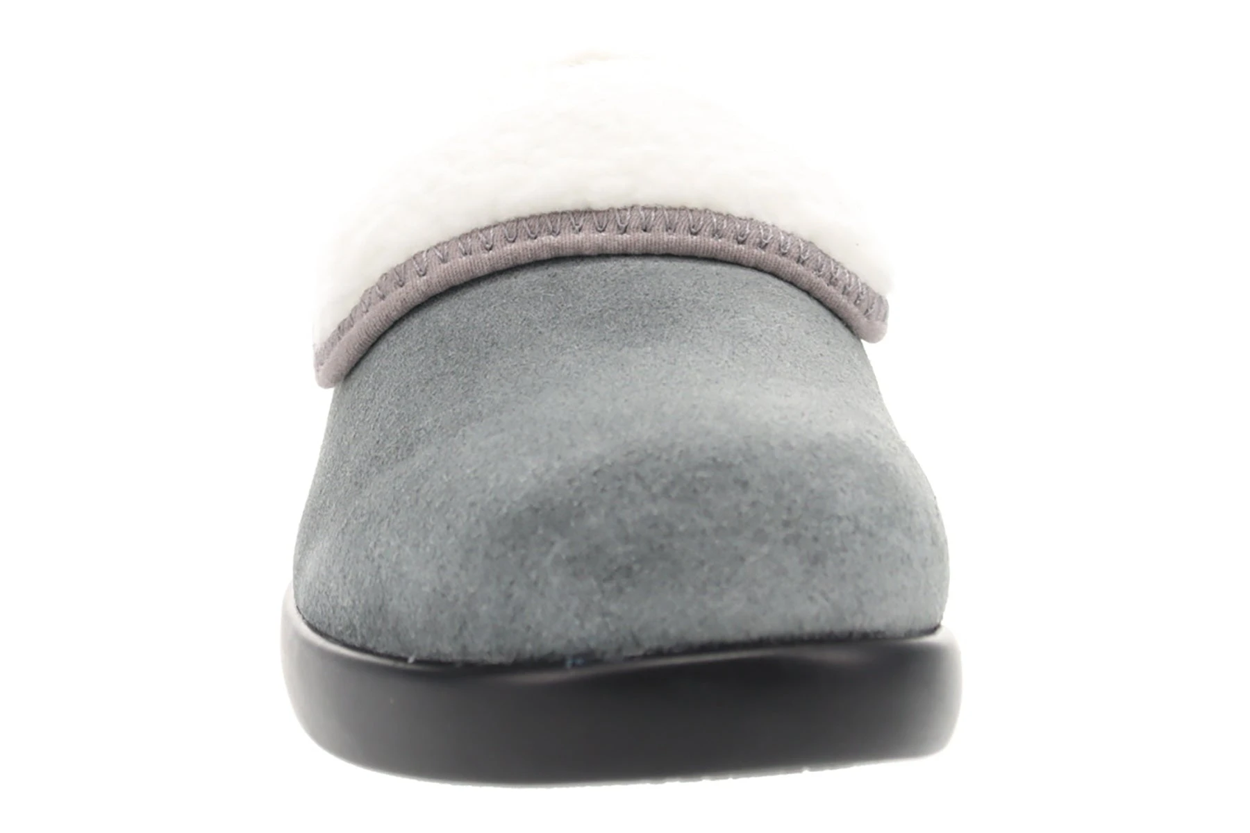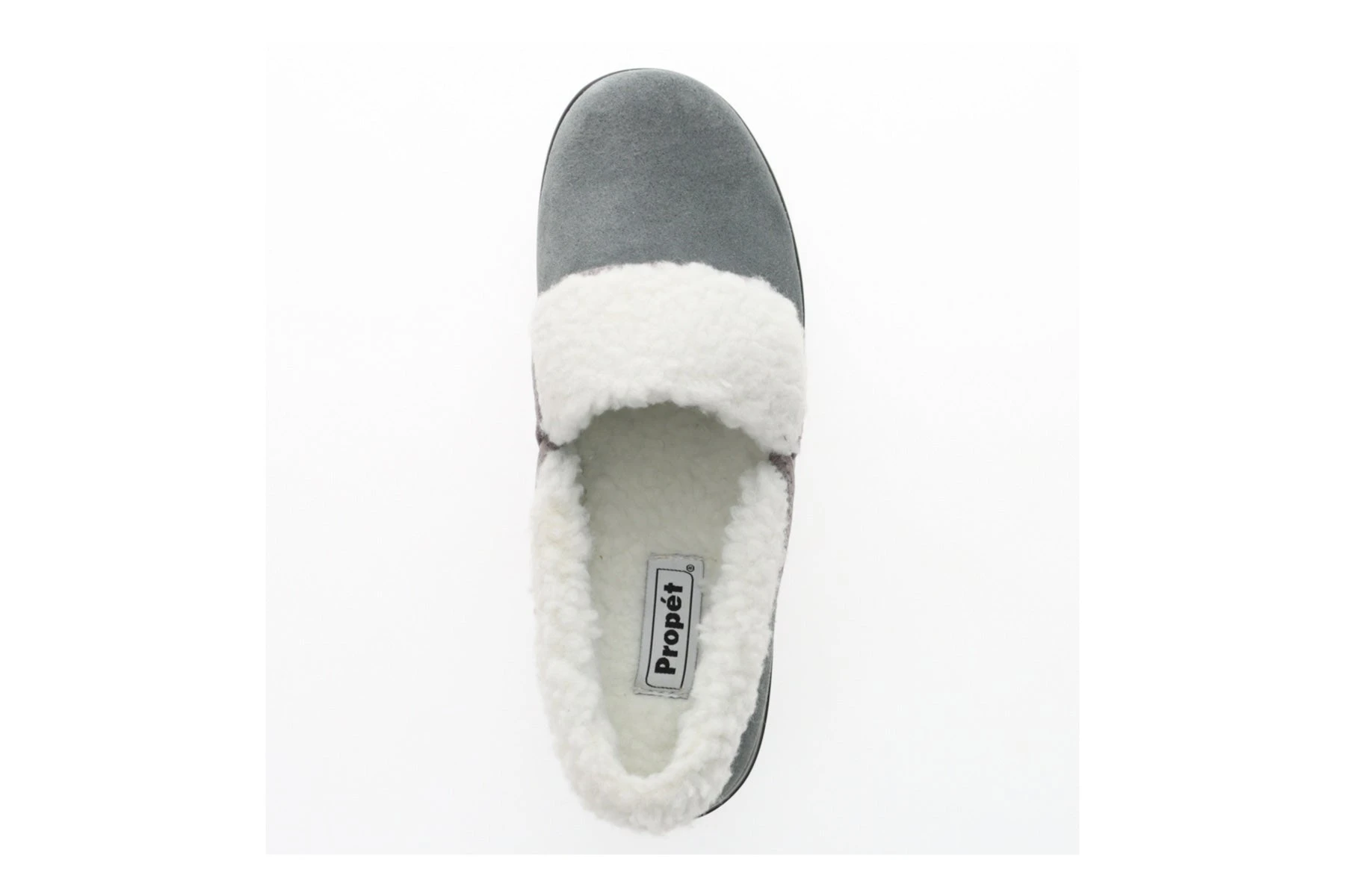 Propet Colbie is a warm and roomy slipper. Features include a suede upper with faux fur lining, slip-on construction, removable footbed and PU outsole. A high density PU foam ensures a cooler footbed, while the warm faux fur trim keeps feet warm during cold weather days.