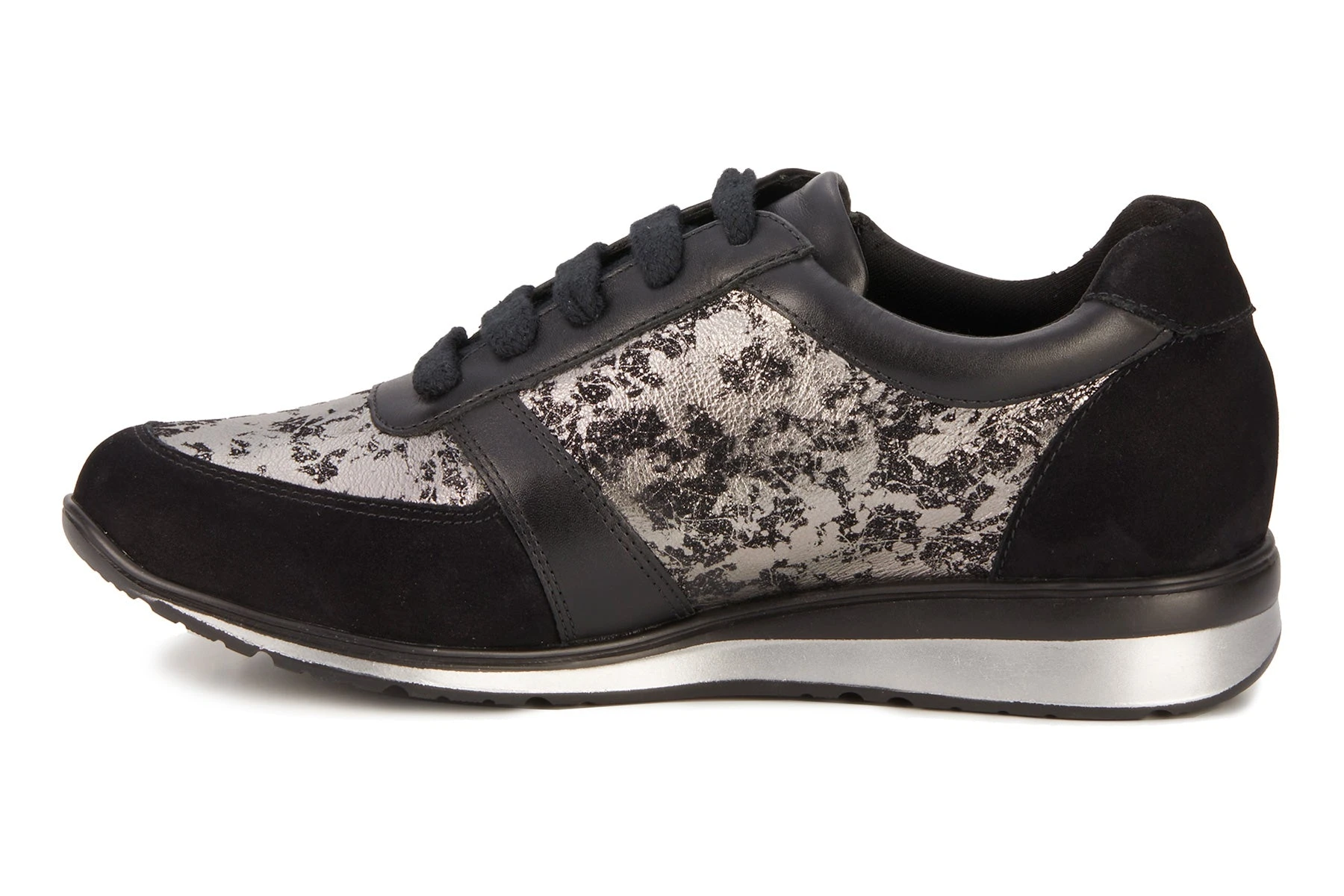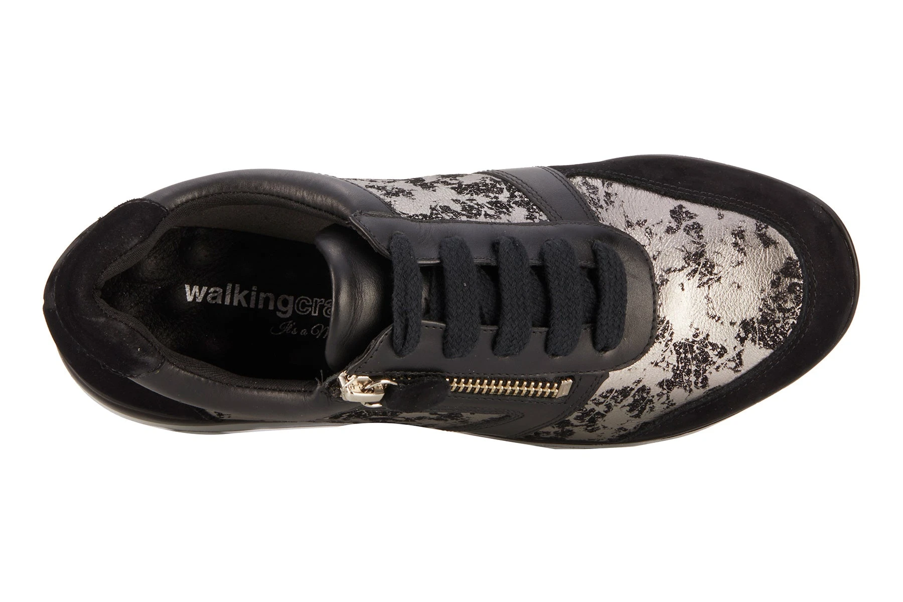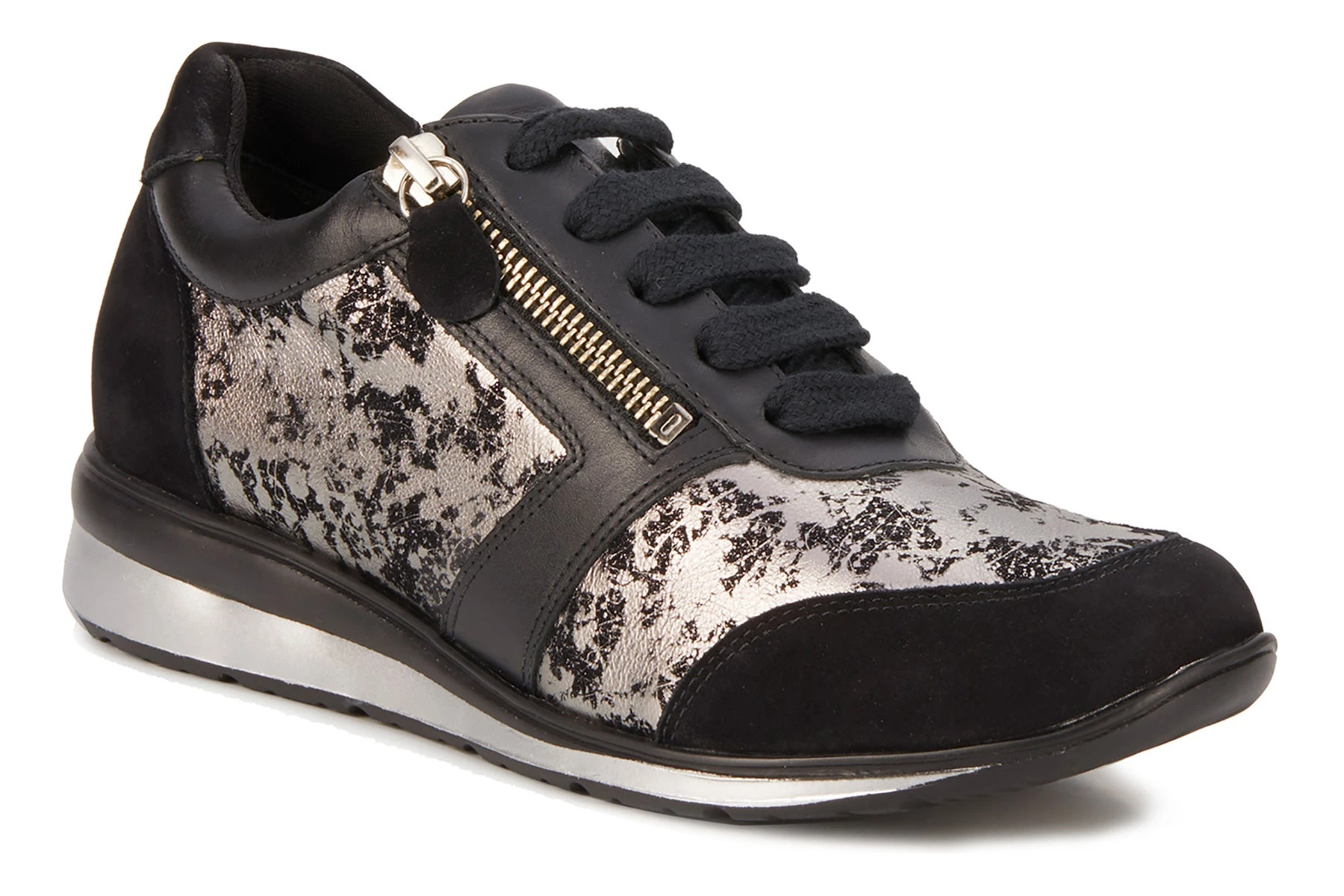 Sporty and stylish is what you want, and the Decker is just the sneaker for you! This classic lace-up sneaker also boasts a functional zipper so you can lace them and leave them! The uppers are made from a combination of metallic printed leather and smooth leathers. The lightweight, flexible construction with removable Tiny Pillows® insoles and enhanced arch support allows you to walk comfortably wherever you go! Genuine leather uppers with printed metallic accents