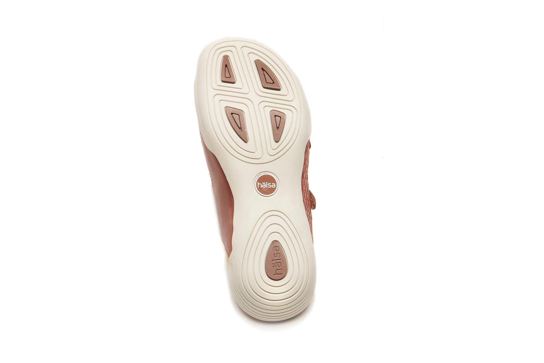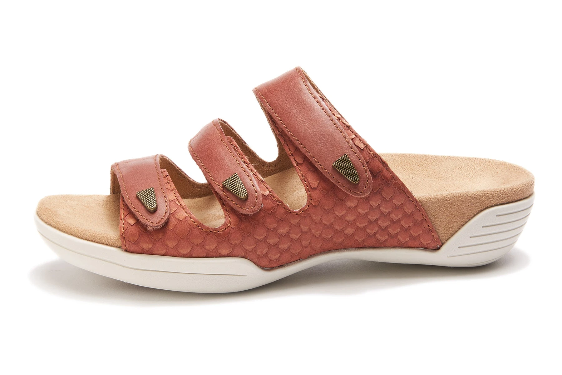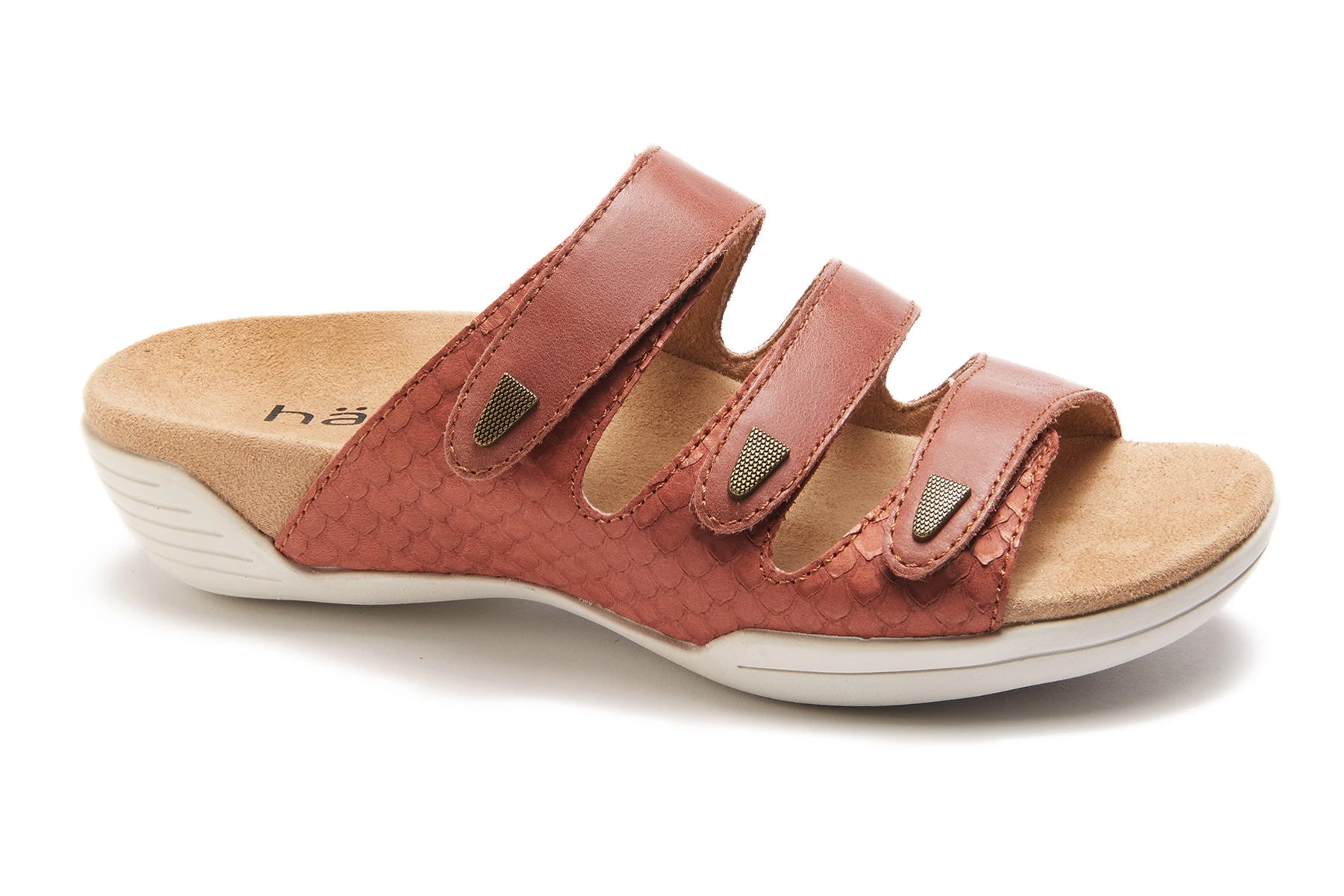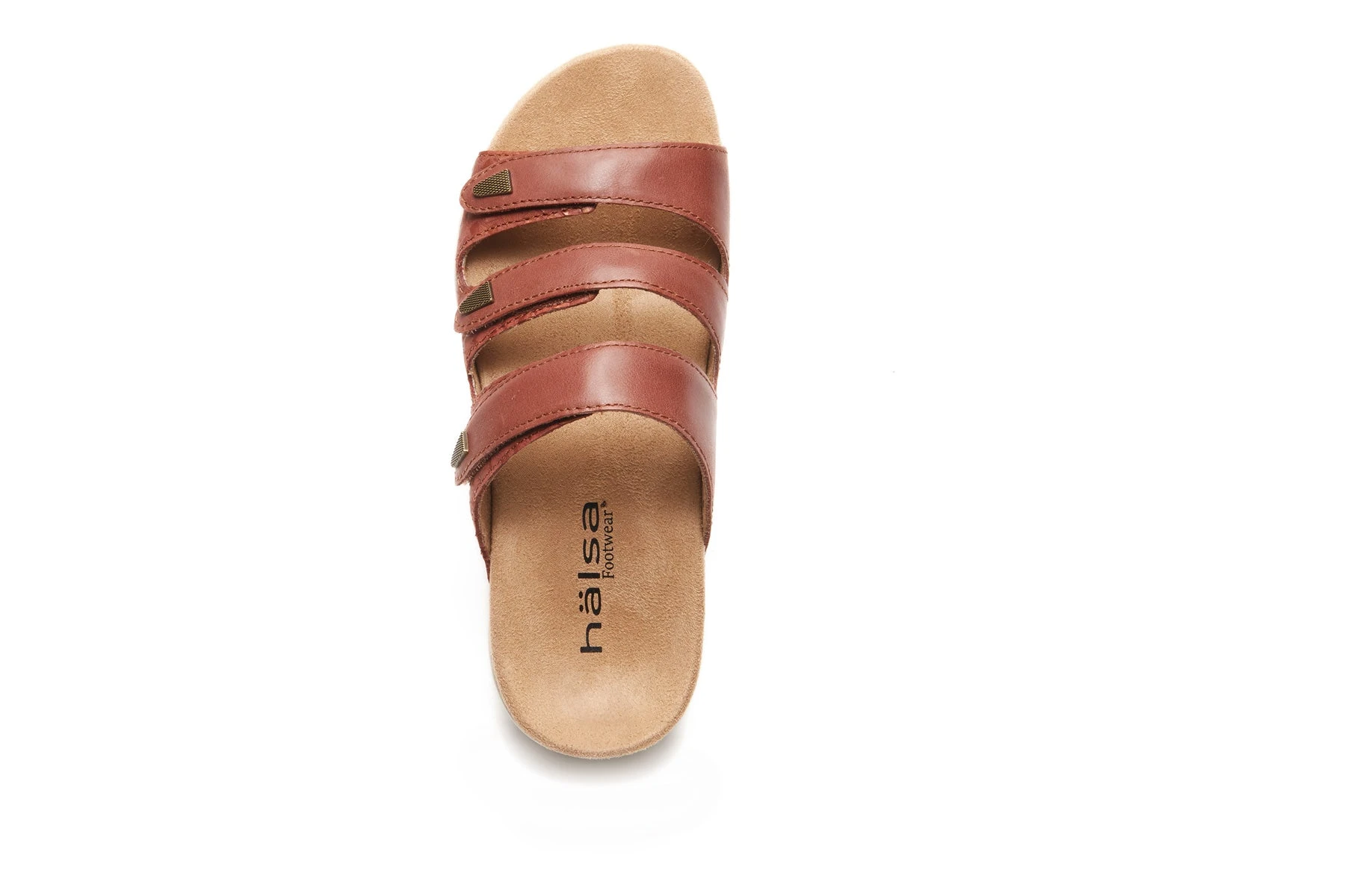 Halsa Footwear Delight is a comfortable slide sandal. These slip-on sandals have leather uppers, adjustable straps and a rubber and synthetic outsole. A plush cushioned footbed, lightweight and flexible midsole and odor-reducing antimicrobial fabric helps these slides stand out.
