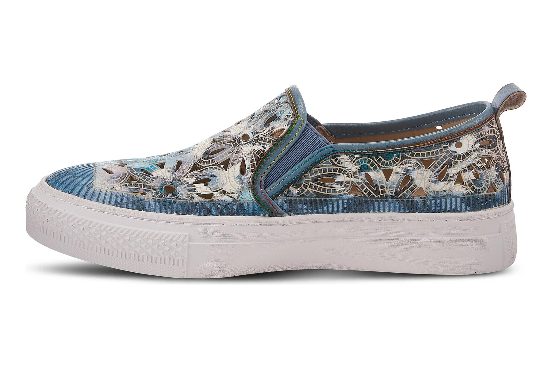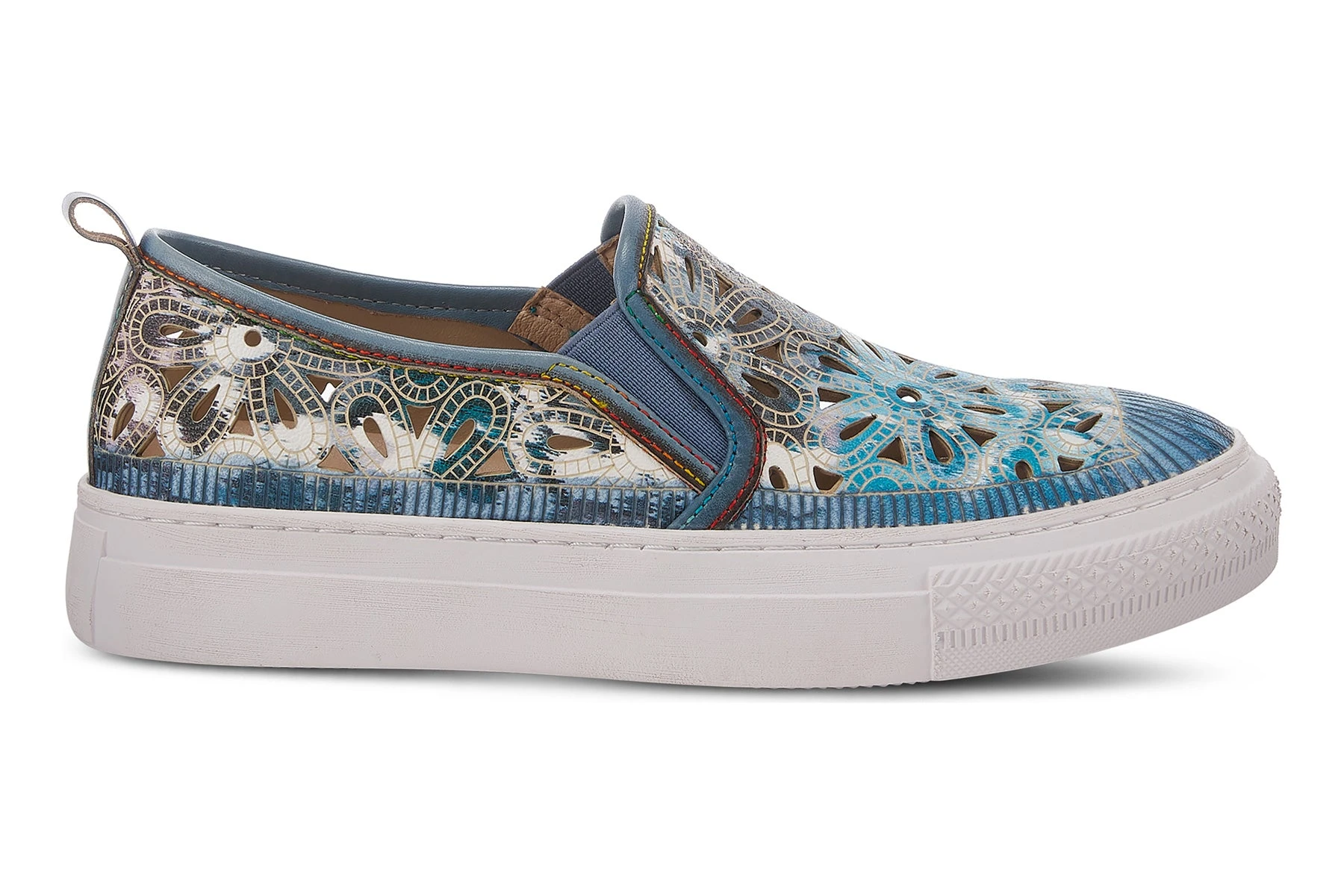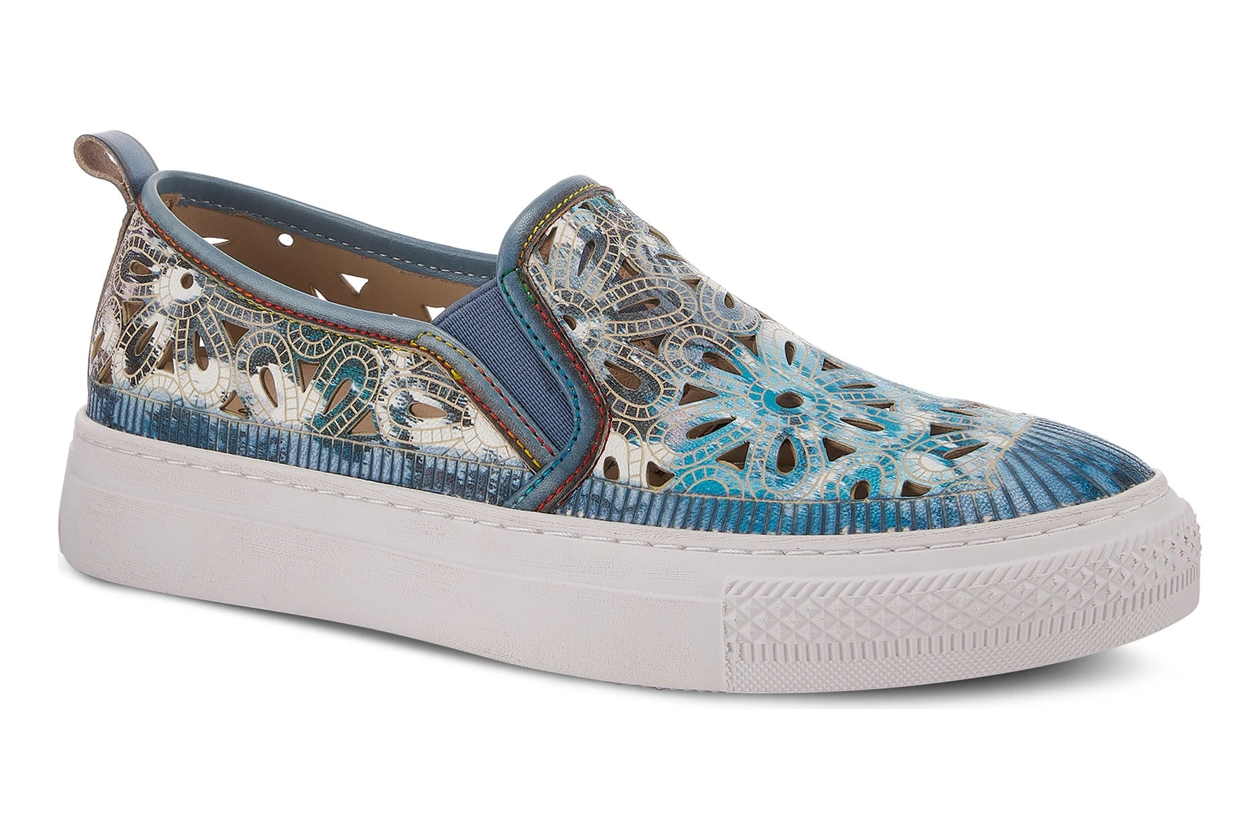 L’Artiste Style: Denofeden- Trendy and comfortable multi-colored sneaker featuring a geometrical laser cut-out details, a pull up tab and dual elastic gore on a traditional, flexible sole.