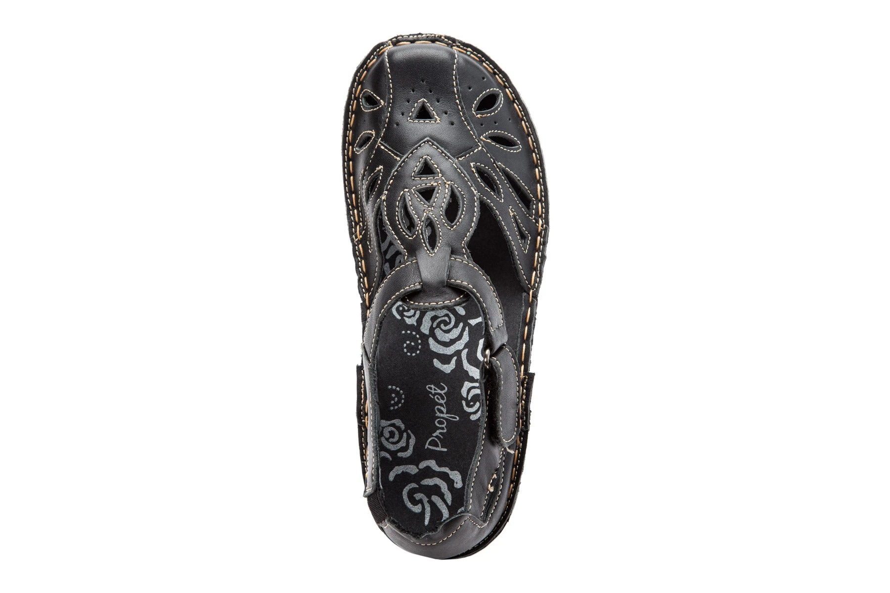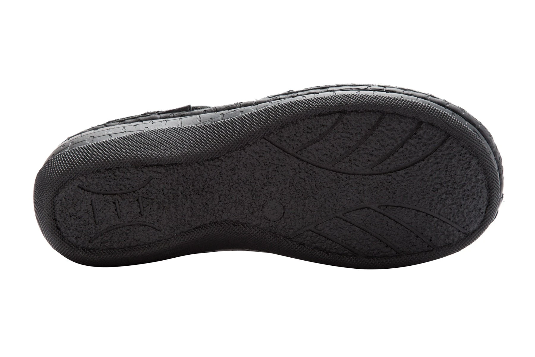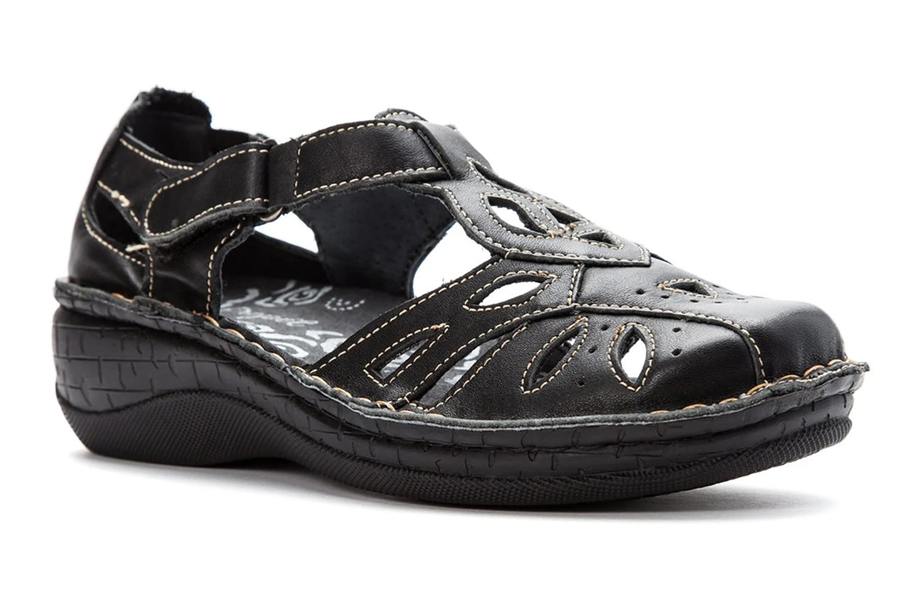 The womenβs Propet Jenna sandal offers everyday style and comfort. The caged leather upper features an adjustable hook and loop strap for a secure fit. The removable footbed accommodates a customized orthotic for a personalized fit. The durable polyurethane outsole provides traction and stability.