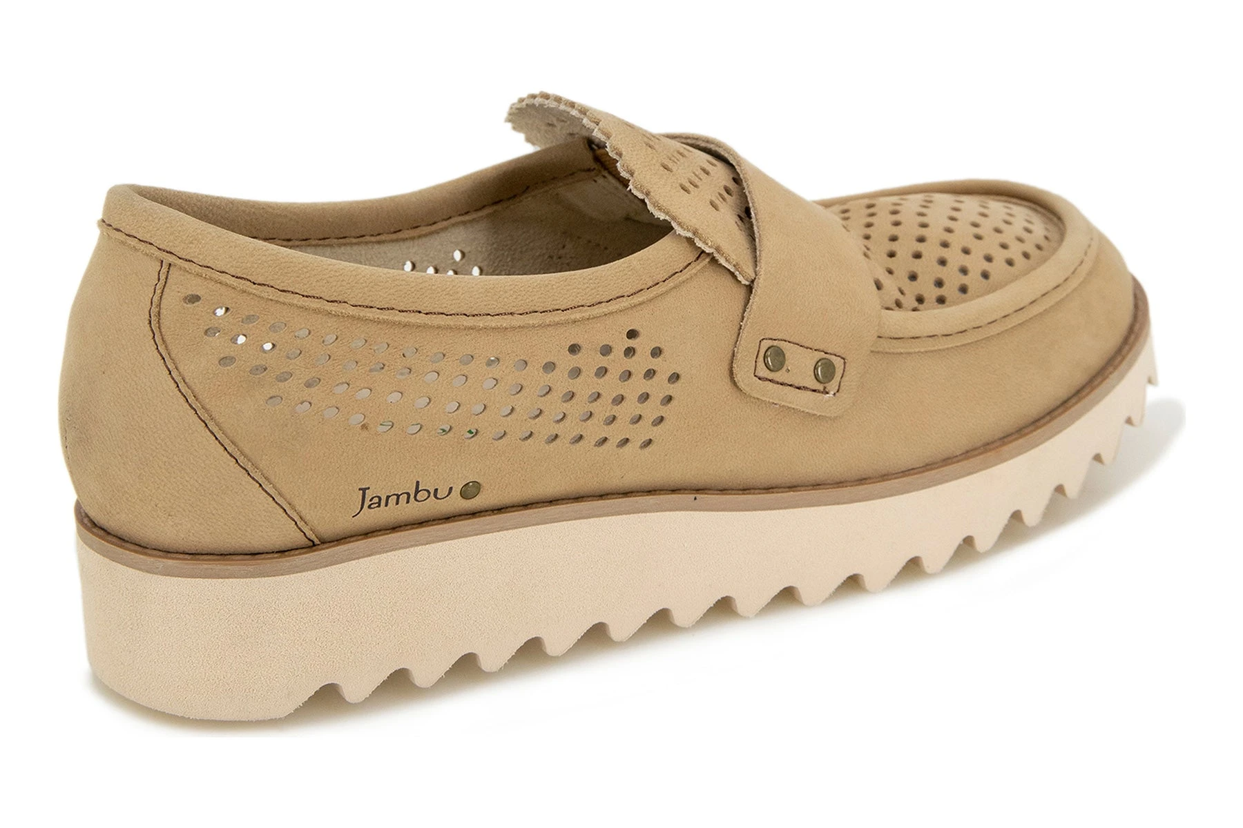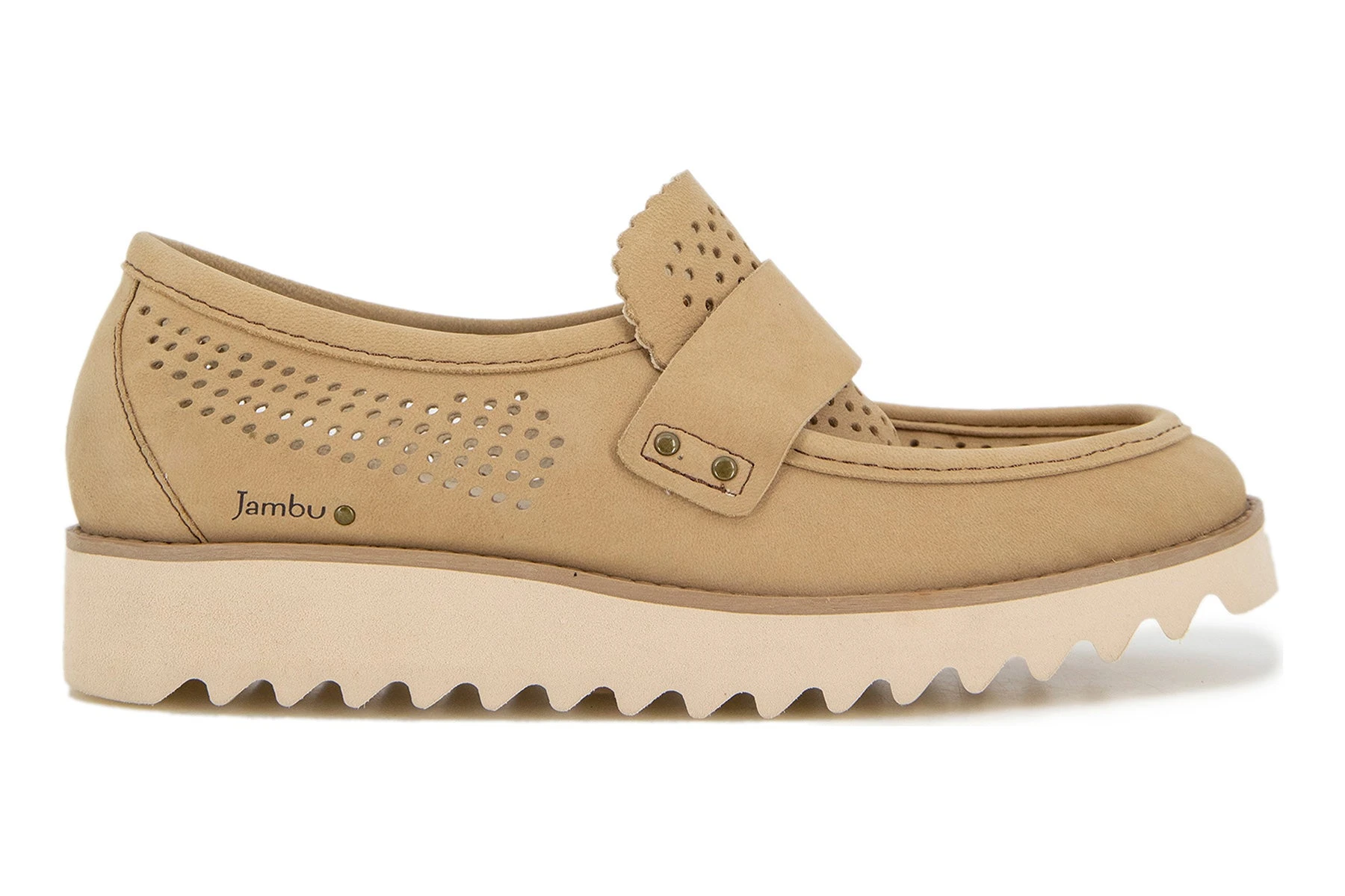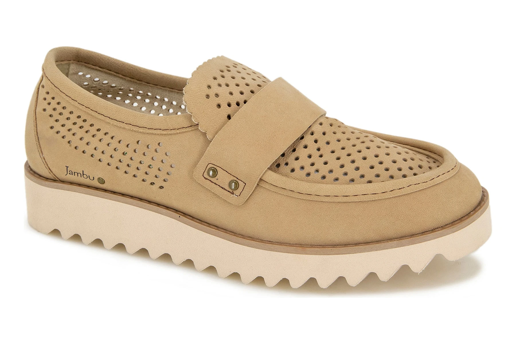 Pair functional fashion with sleek style in the Jessie. This slip on shoe features a lightweight design with airy perforations, teeth like treads for maximum grip, and playful scalloped detailing and color blocked look.