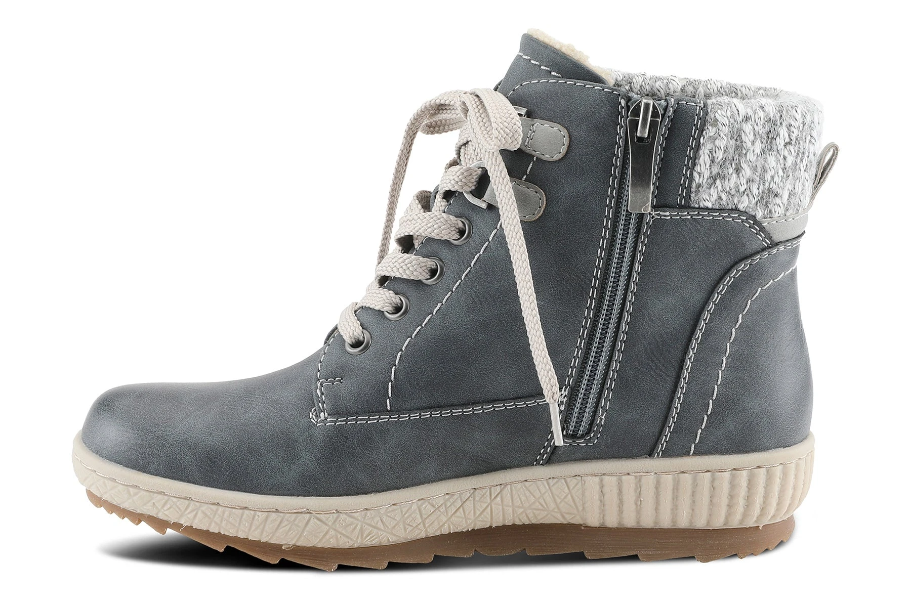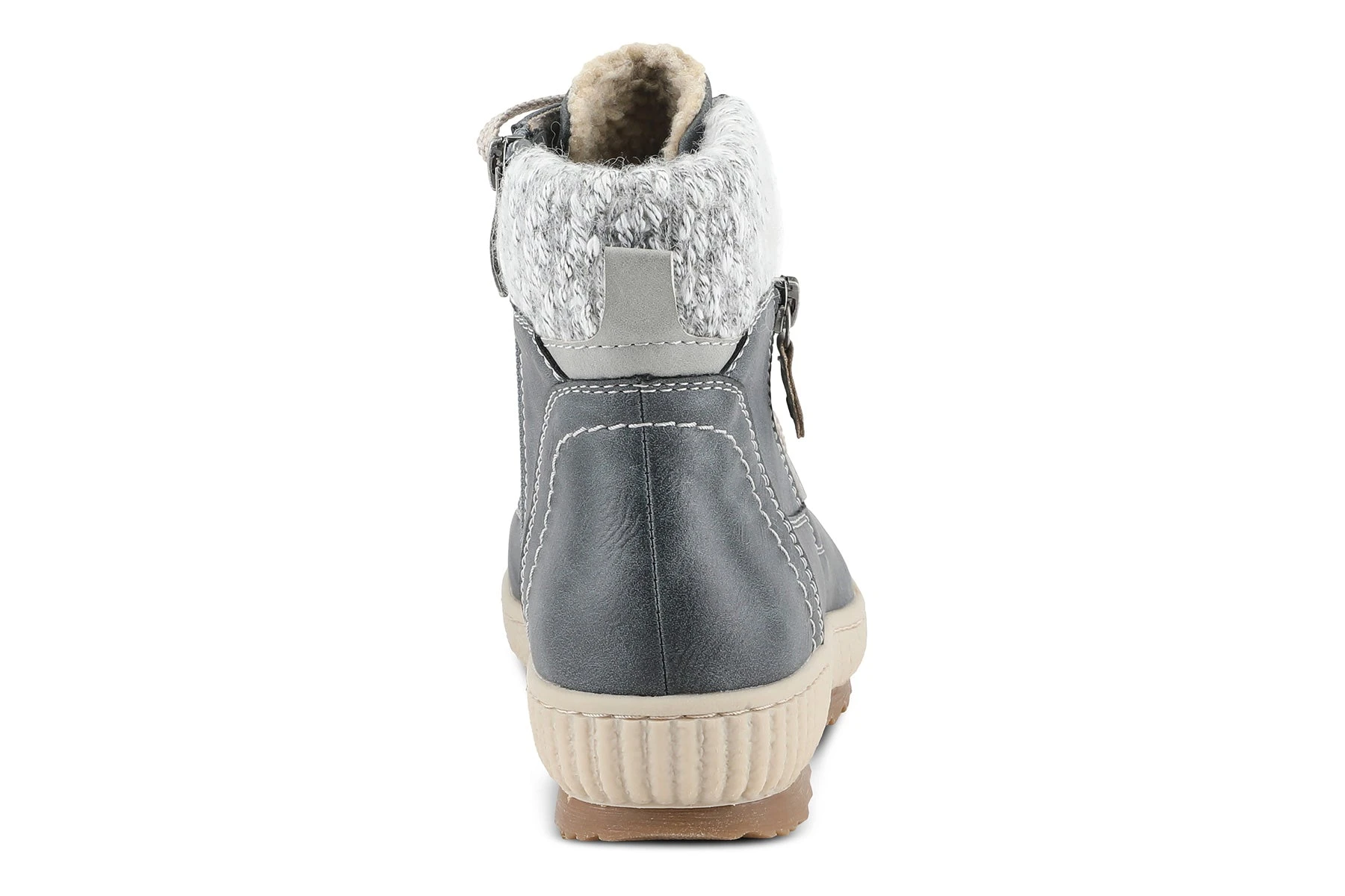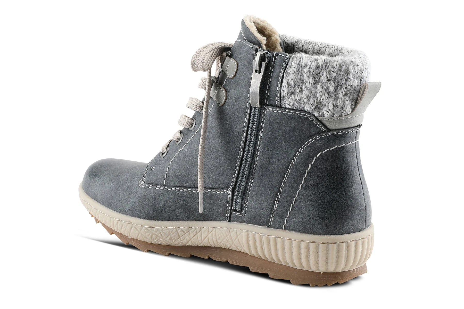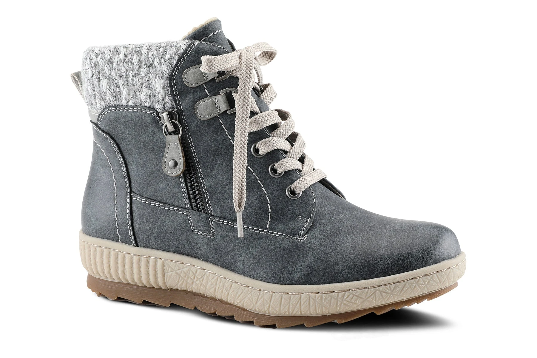 Spring Step KARLENE Relife bootie showcasing a beautiful sweater top, decorative side zipper, and cozy sherpa-like lining on a shock-absorbing, all-day wear outsole.