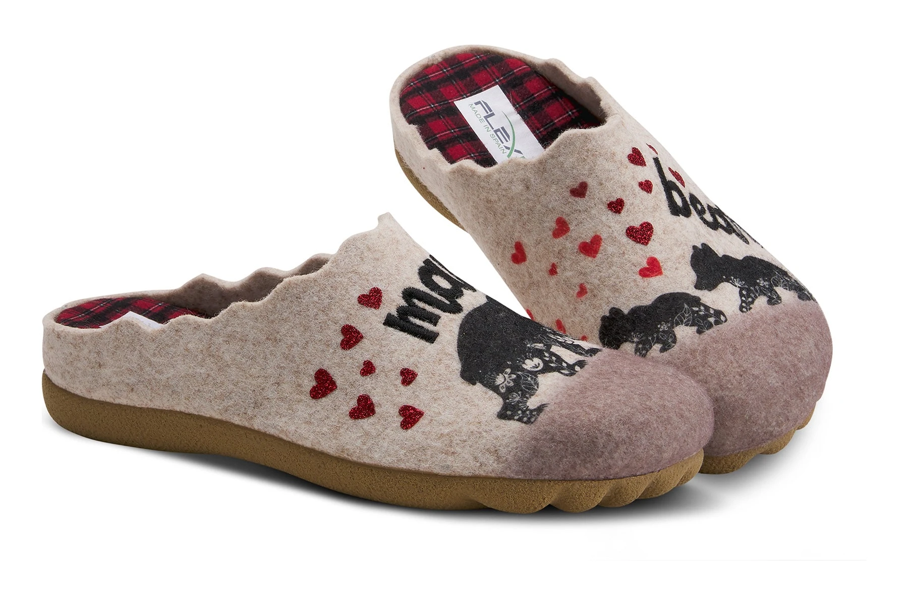 Flexus Style: Mamabear -Made with mama bears in mind, these charming slippers are a must for those cozy nights in with the whole family! Classic plaid pattern on the insole. With an indoor/outodoor rubber sole they are durable for wearing around the house or to run quick errands around town.