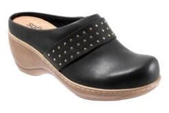 A studded band adds a cute design element to the Marana clog. The Marana clog has a soft removable footbed with arch support and is built on our popular curvy lightweight platform wedge.