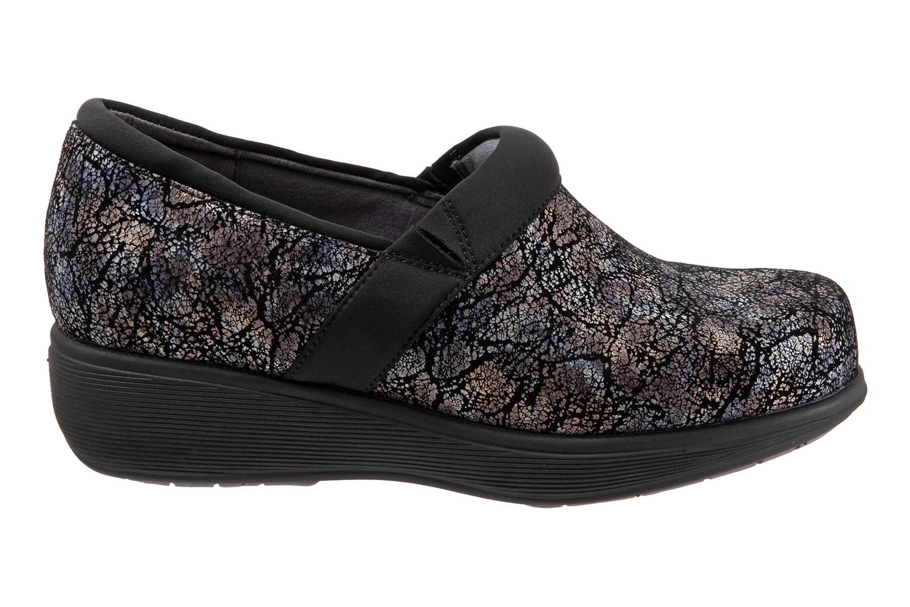 Meredith Sport is a slip-on clog for service professionals. A leather upper, contoured and cushioned footbed and flexible EVA outsole helps feet on long shifts. Nurses and hospitality workers can expect superior arch support, lightweight yet sturdy construction and closed toe style.