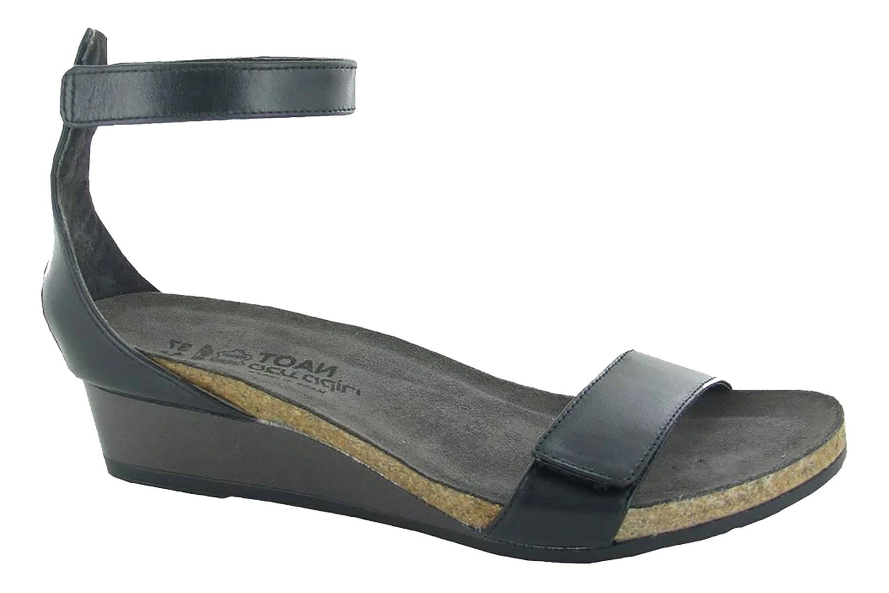 Chic and comfortable, the Naot Mermaid Ankle Strap Wedge Sandal features a lightweight and flexible cork and latex footbed for shock-absorption and arch support.