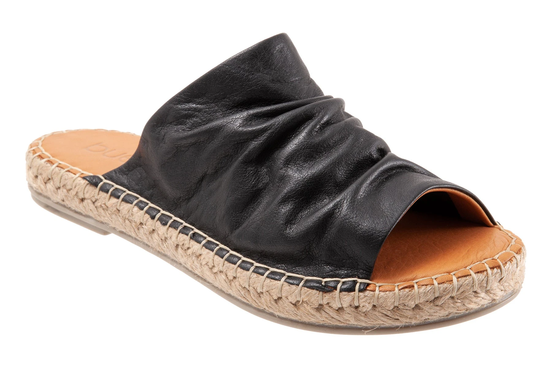 A trendy slide on sandal with a ruched detail and a woven sole design for your everyday look.