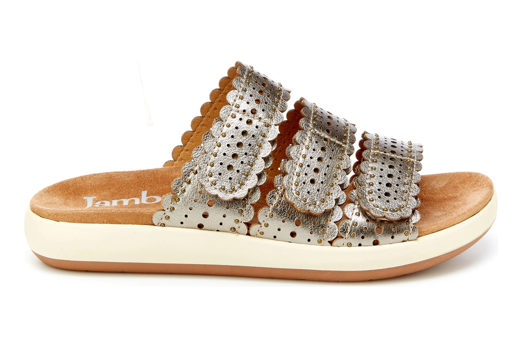 Jambu Odysseus is a chic strappy sandal. These warm weather shoes have leather uppers, adjustable straps, memory foam insoles and a durable rubber outsole. Micro studding and perforated details adorn the upper, while a slip-on construction offers breathability and stability.