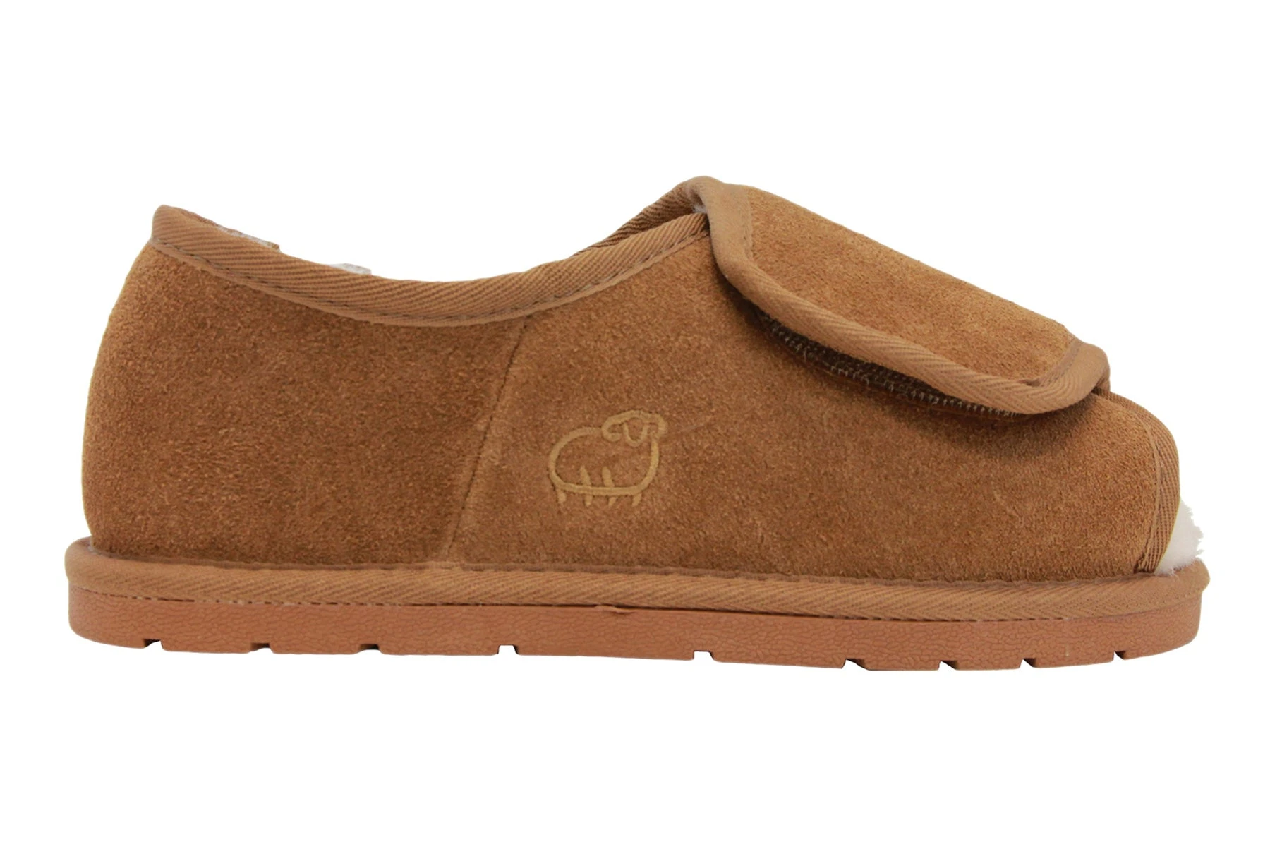 The Women’s Open Toe Wrap is part of Lamo’s Luxury Collection. This wellness wrap is made with a cow suede upper and 100% Australian sheepskin lining. The open toe wrap features an adjustable strap, open toe, and closed heel construction providing maximum protection and comfort. The open toe wrap also features Lamo’s TPR Comfort-Flex outsole.