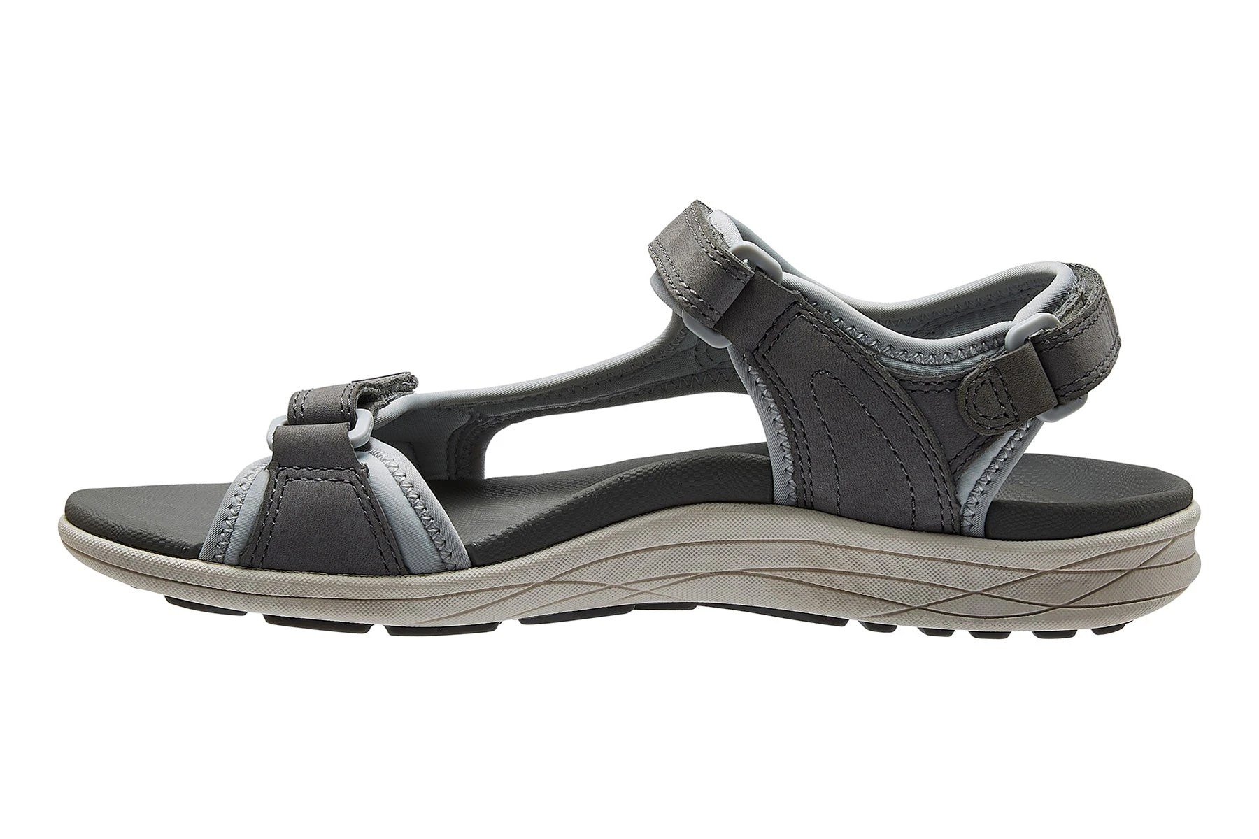 - Contoured EVA footbed with deep heel cup for stability and cushioned heel crash pad.