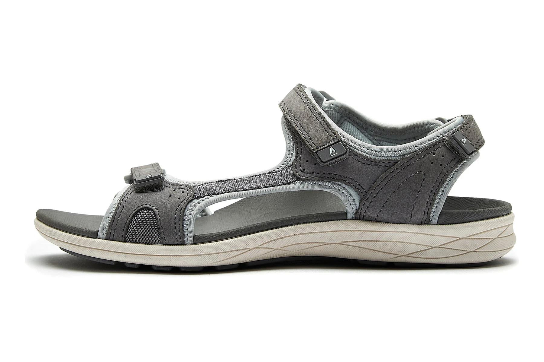 - Nubuck leather and textile upper with three adjustable hook and loop straps for a secure fit.