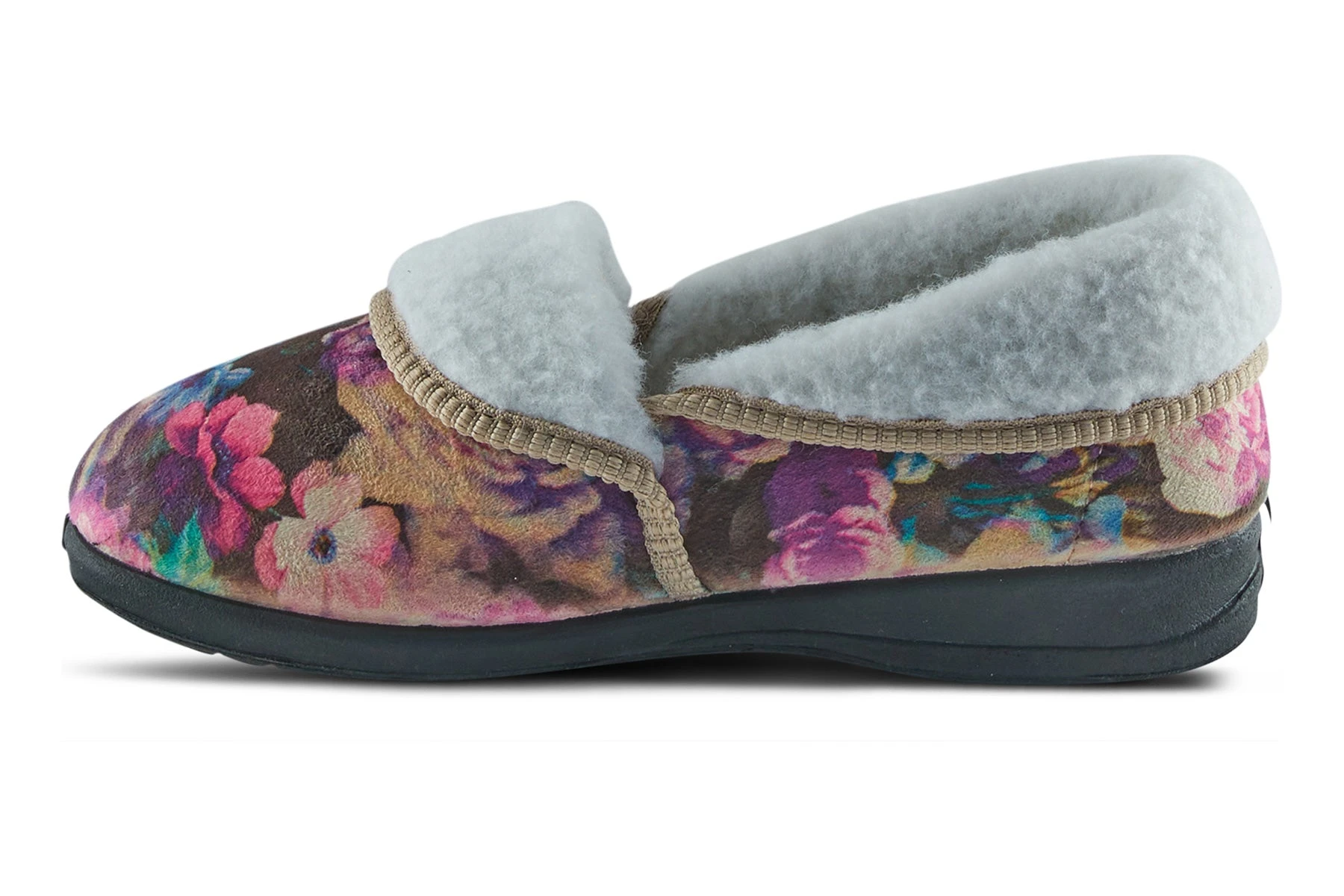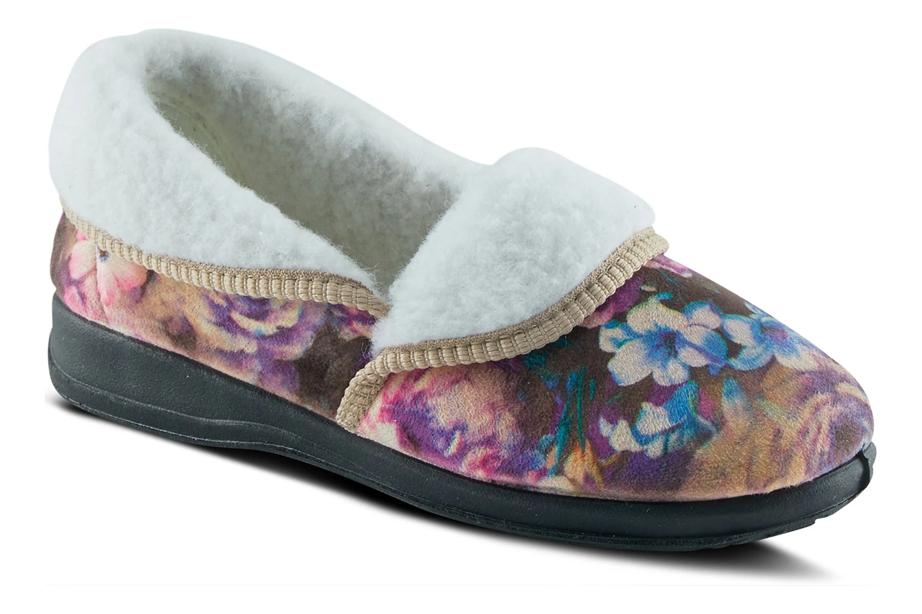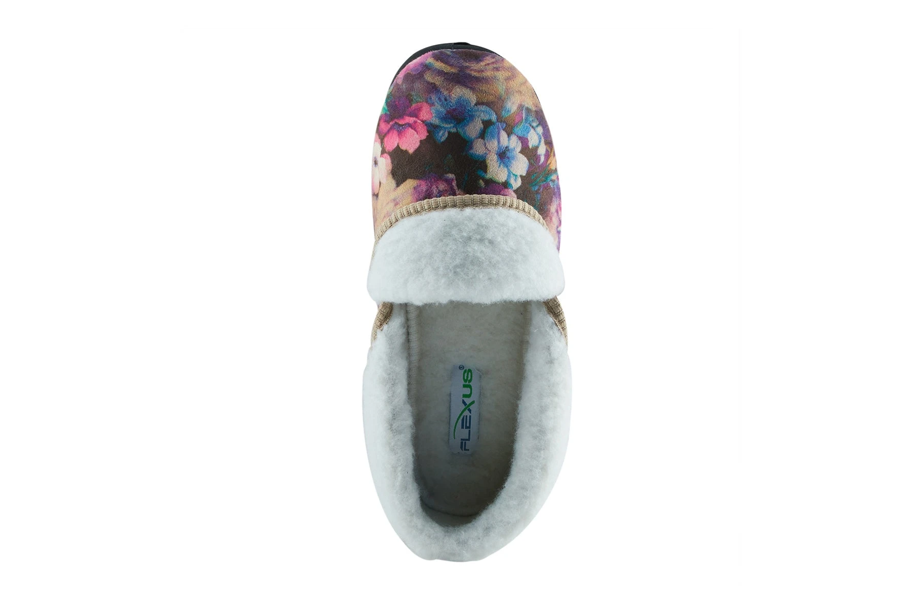 Flexus Style: PURA -Stunning indoor convertible slipper with a beautiful printed pattern, roll the foldovers up for more warmth and coverage.