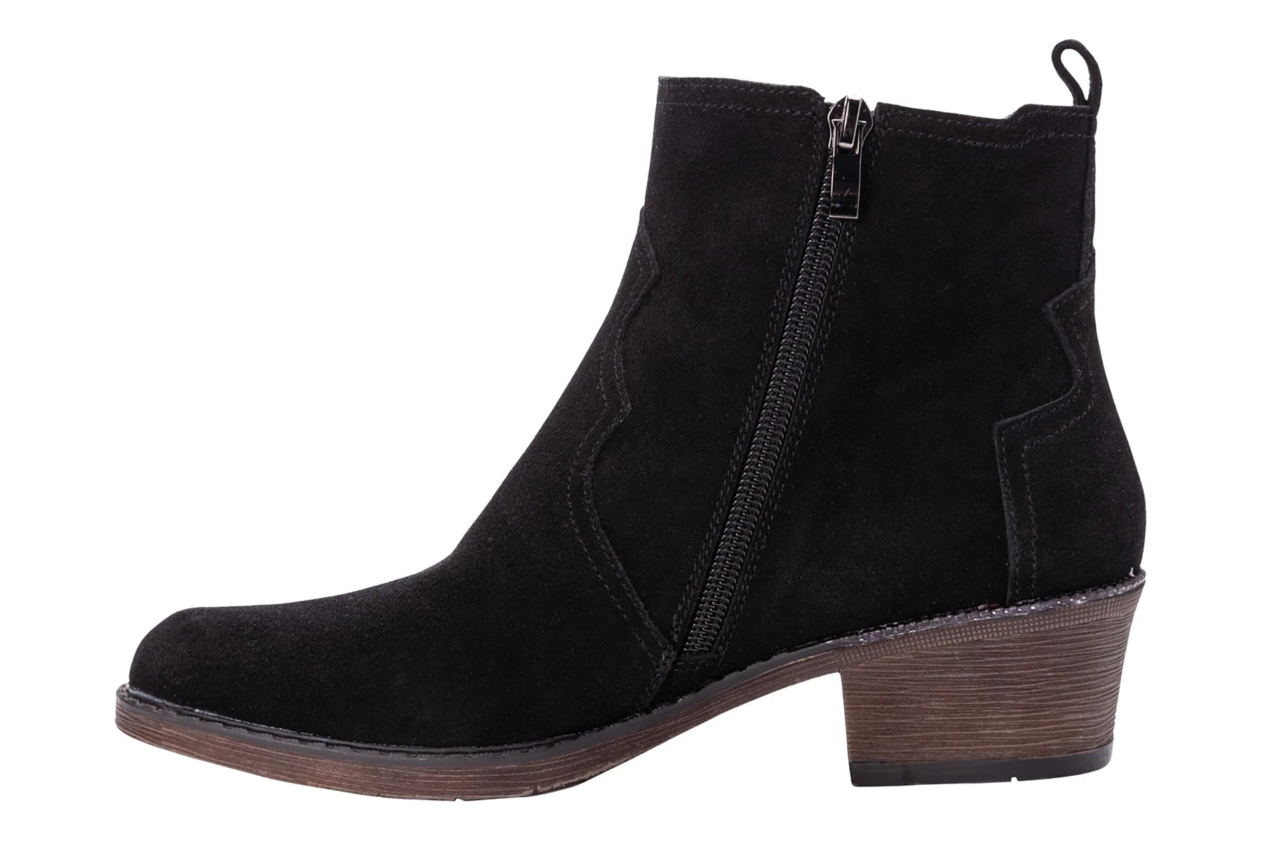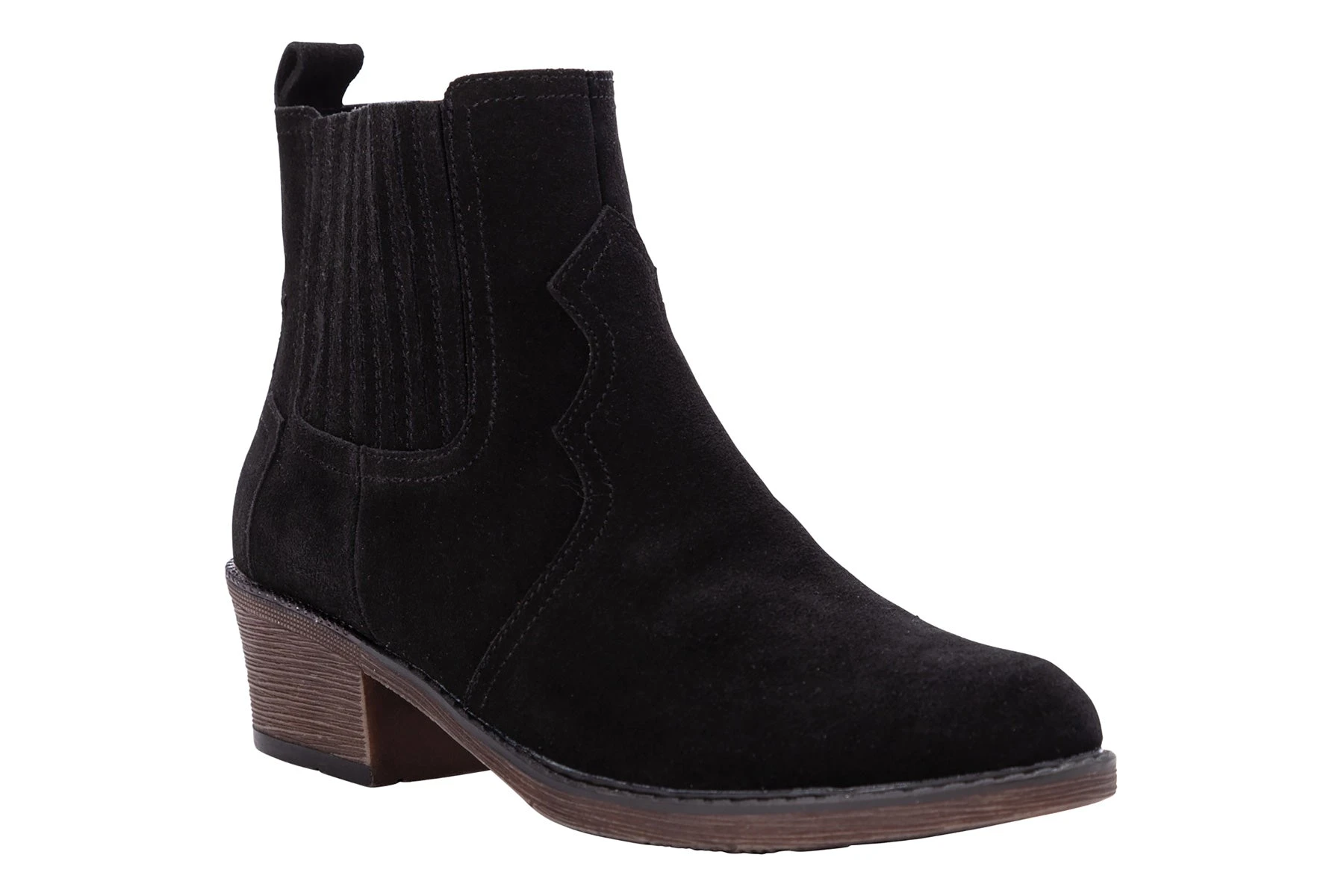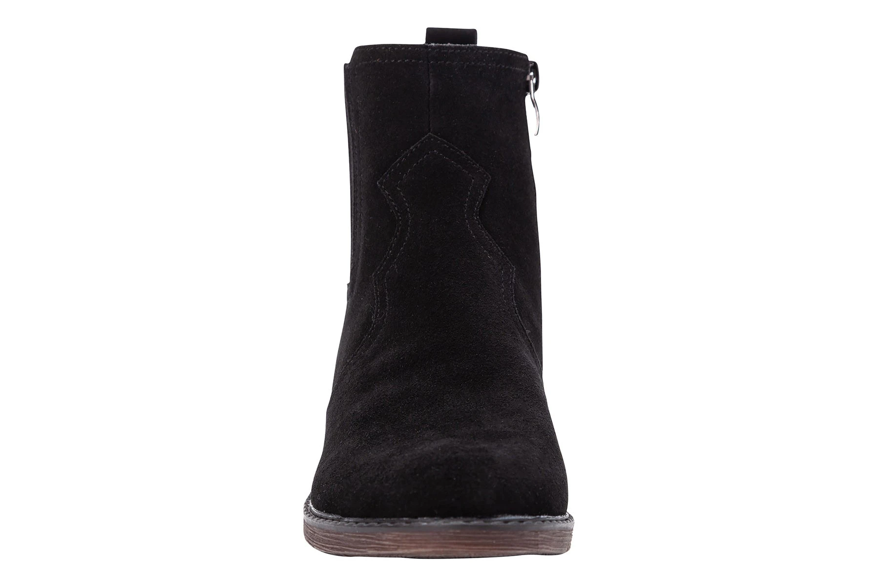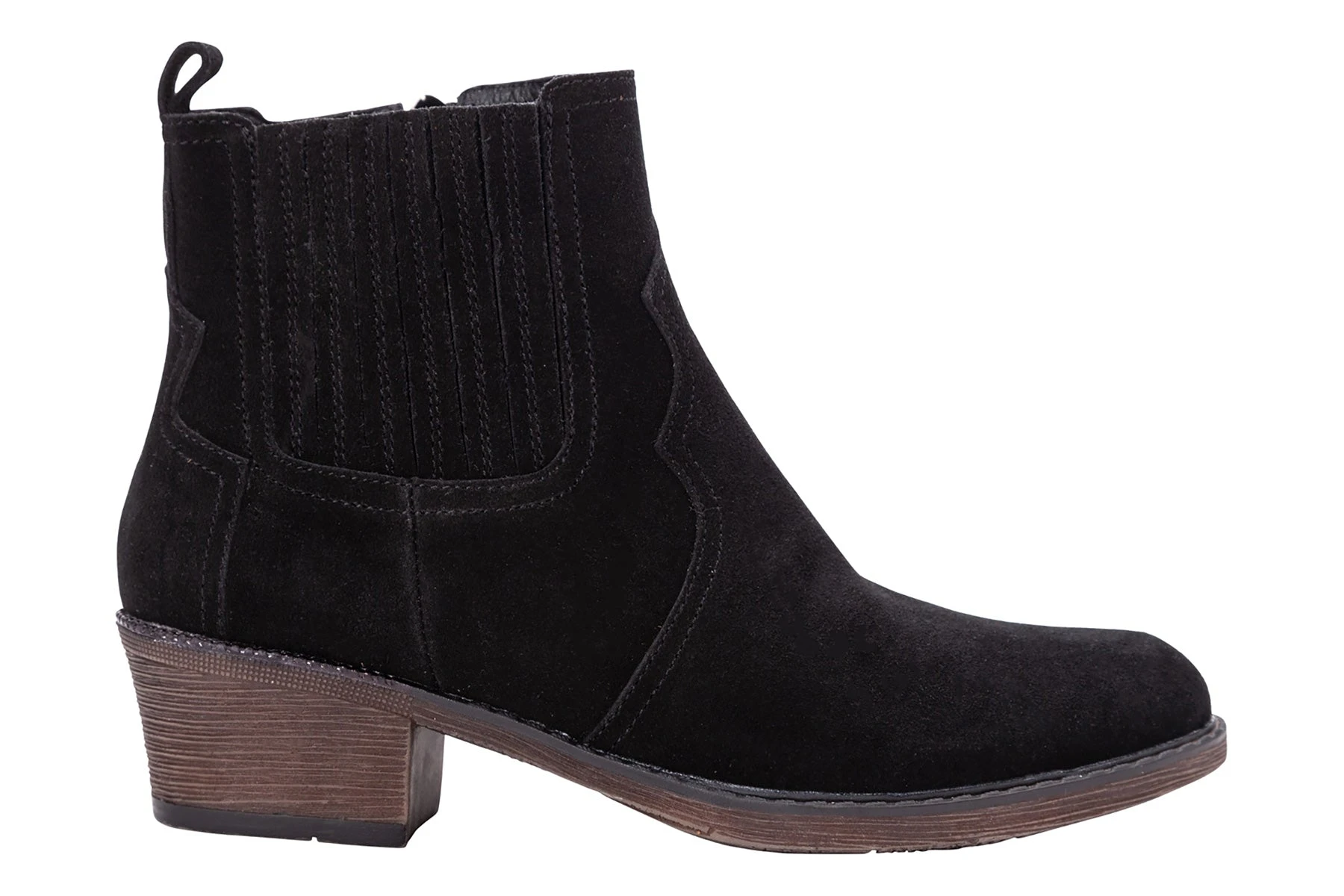 Suede upper with traditional western styling and hidden side goring for a comfortable fit, cushioning rubber with mesh lining.
