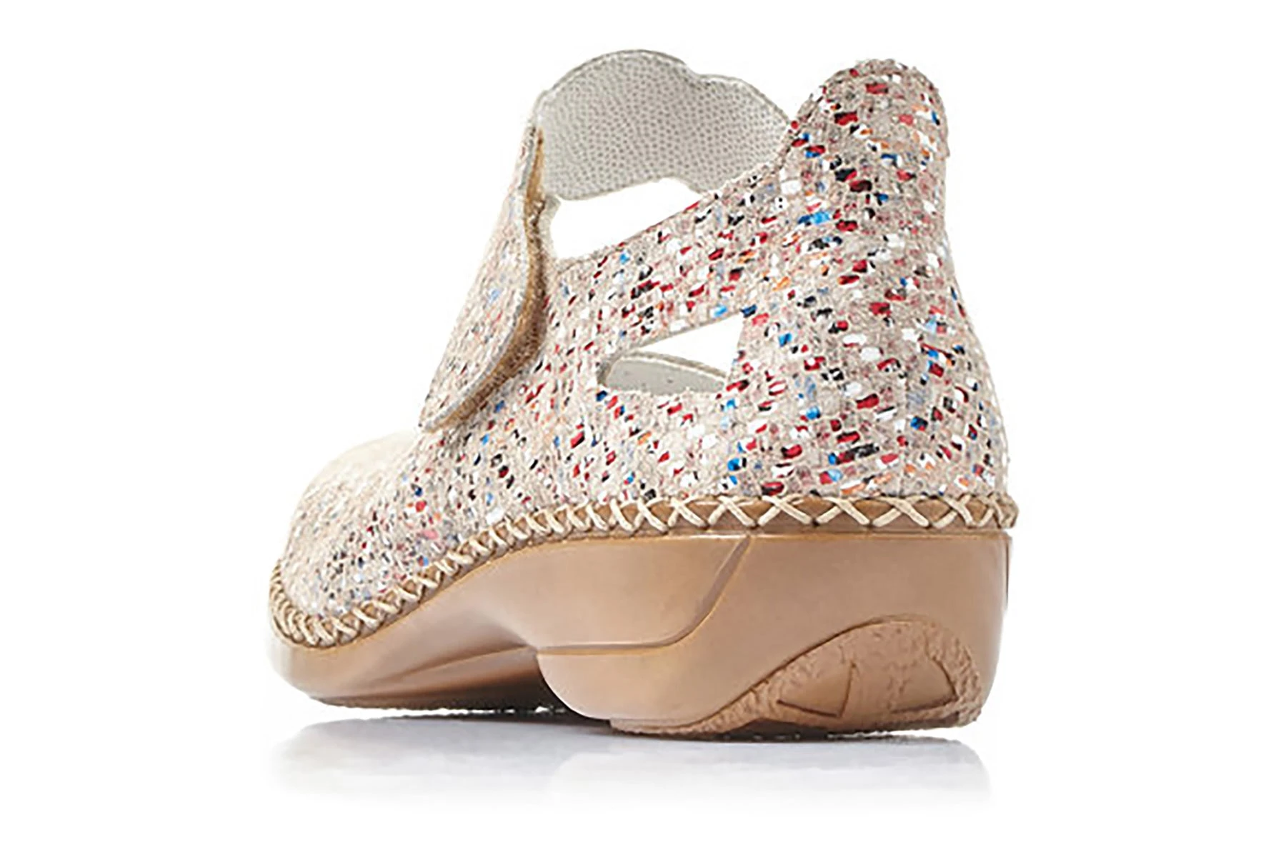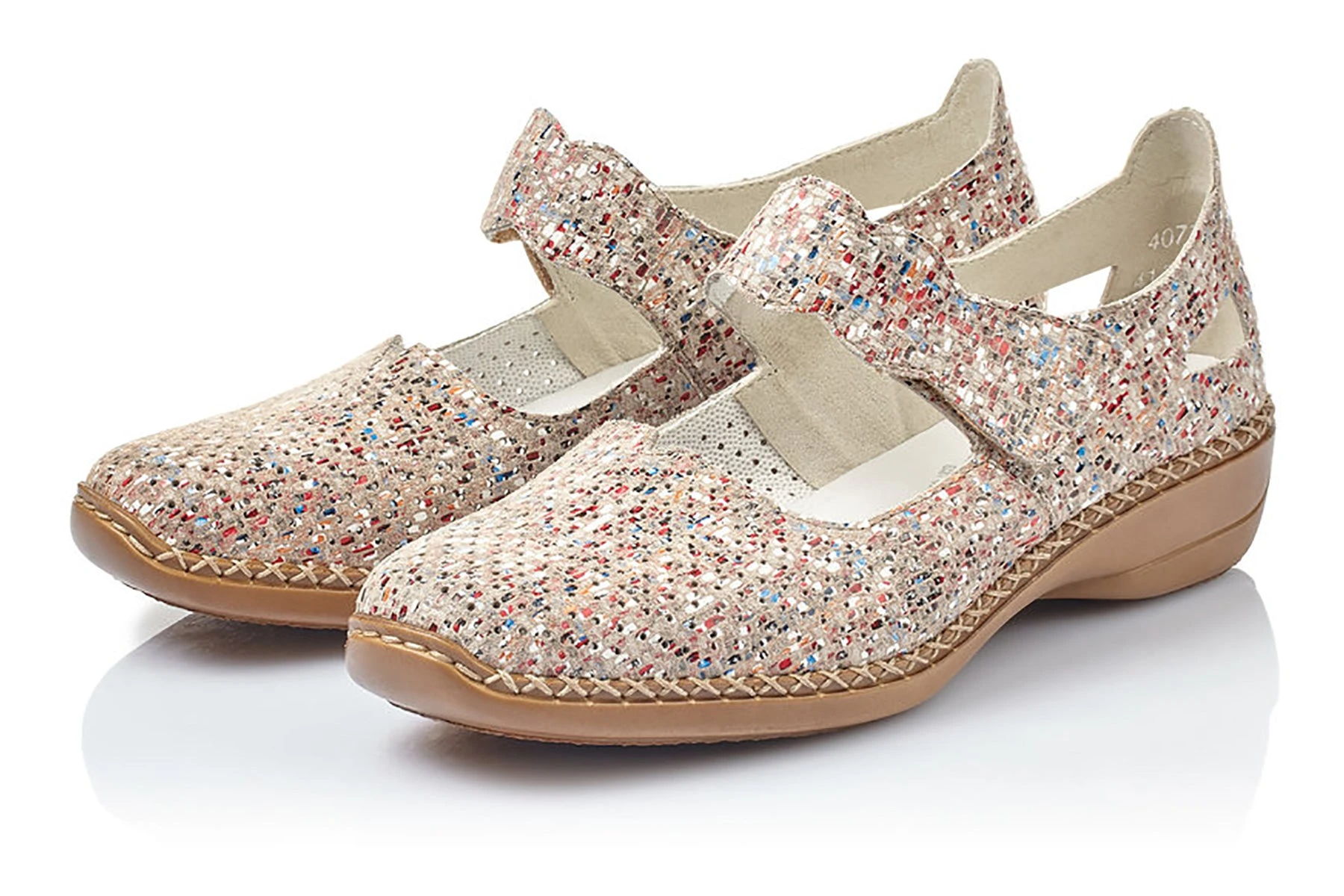 The women’s Rieker Doris J2 mary jane features an adjustable hook and loop strap for a secure and customized fit. The premium leather upper is embellished with a pattern of laser cutouts for added flair.
