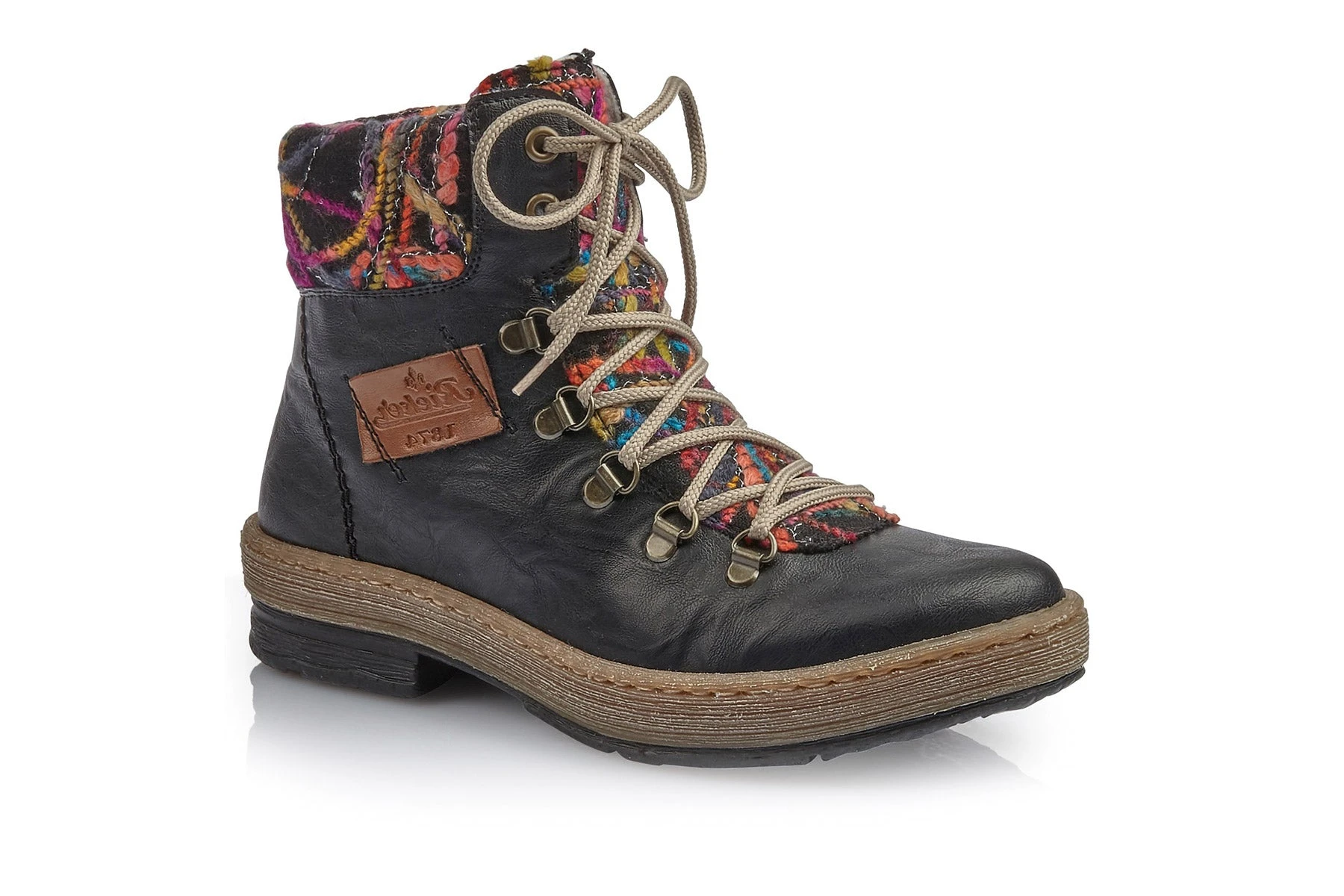 Complete your casual style with the women’s Rieker Felicitas 43 lace up boot. The blanket-woven tongue and padded collar add eye-catching appeal and comfort. The fleece lining adds warmth, while the cushioned footbed with arch support deliver unmatched comfort, ideal for all-day adventures.