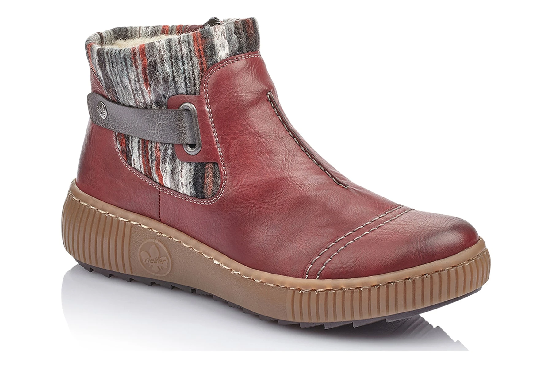 Take on the day in style and comfort with the women’s Rieker Felicitas 84 ankle boot. The colorful blanket woven shaft delivers eye-catching appeal. The removable footbed accommodates custom orthotics, while the cozy faux fur lining adds comfort and warmth, perfect for chilly days ahead.