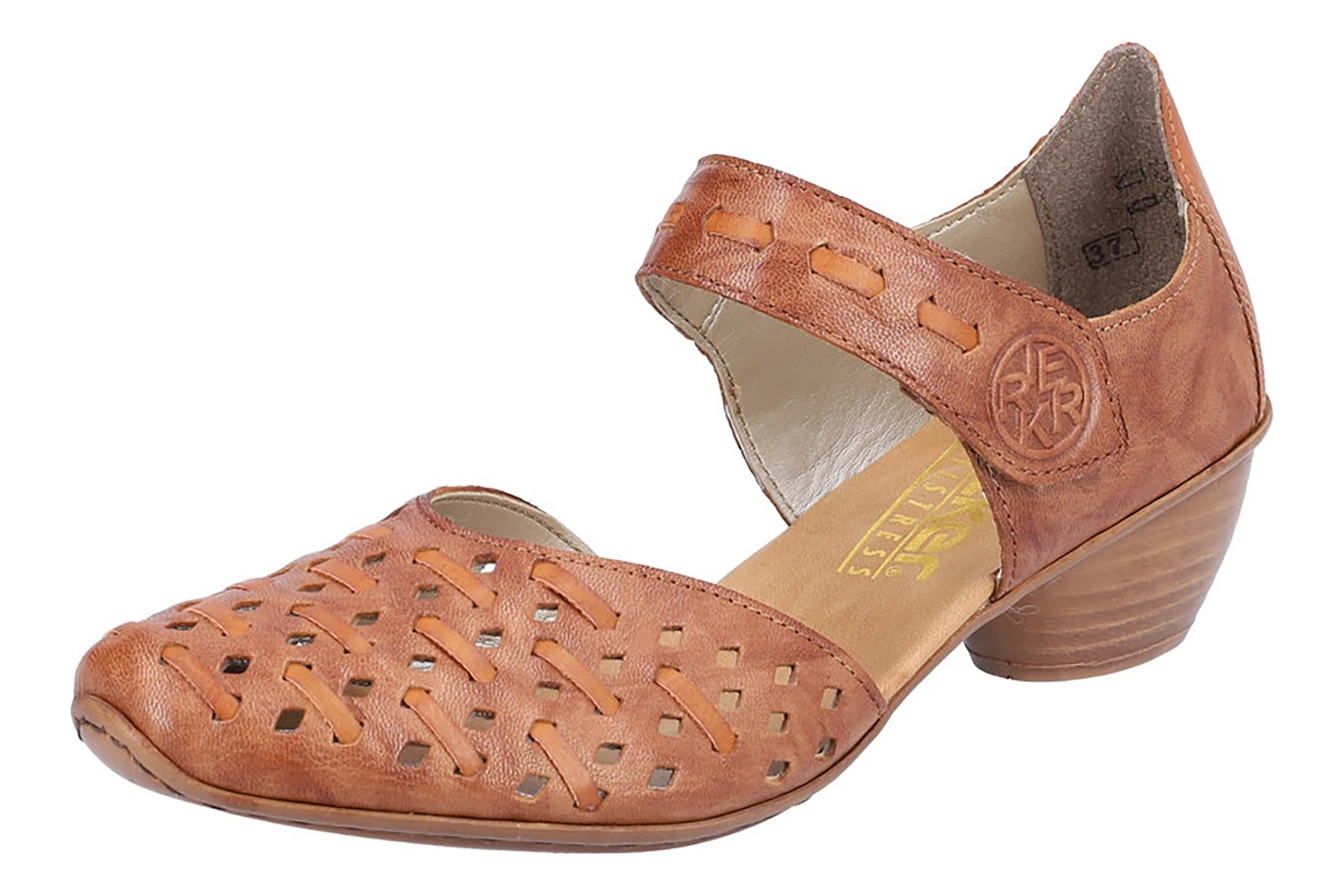 The Rieker Mirjam 70 daintily practical low-heeled beauty slips on with ease for occasions dressy or casual, with an adjustable ankle strap for a custom fit. Its all-over laser-cut design adds a unique flair to this timeless shoe.