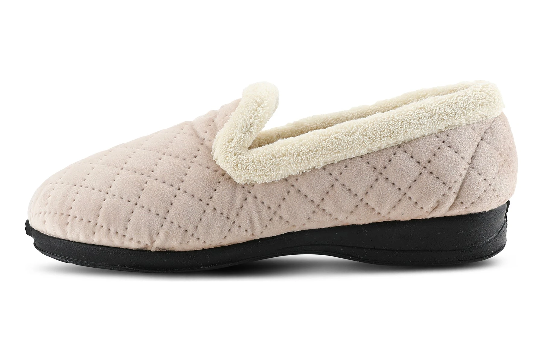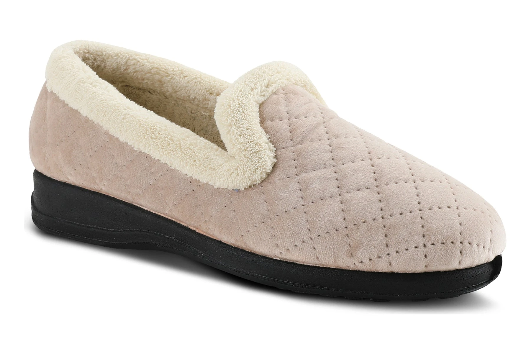 Flexus Style: SLUMBERS -Comfy slipper with diamond quilting, warm lining and trim, and memory foam insole on an all-day