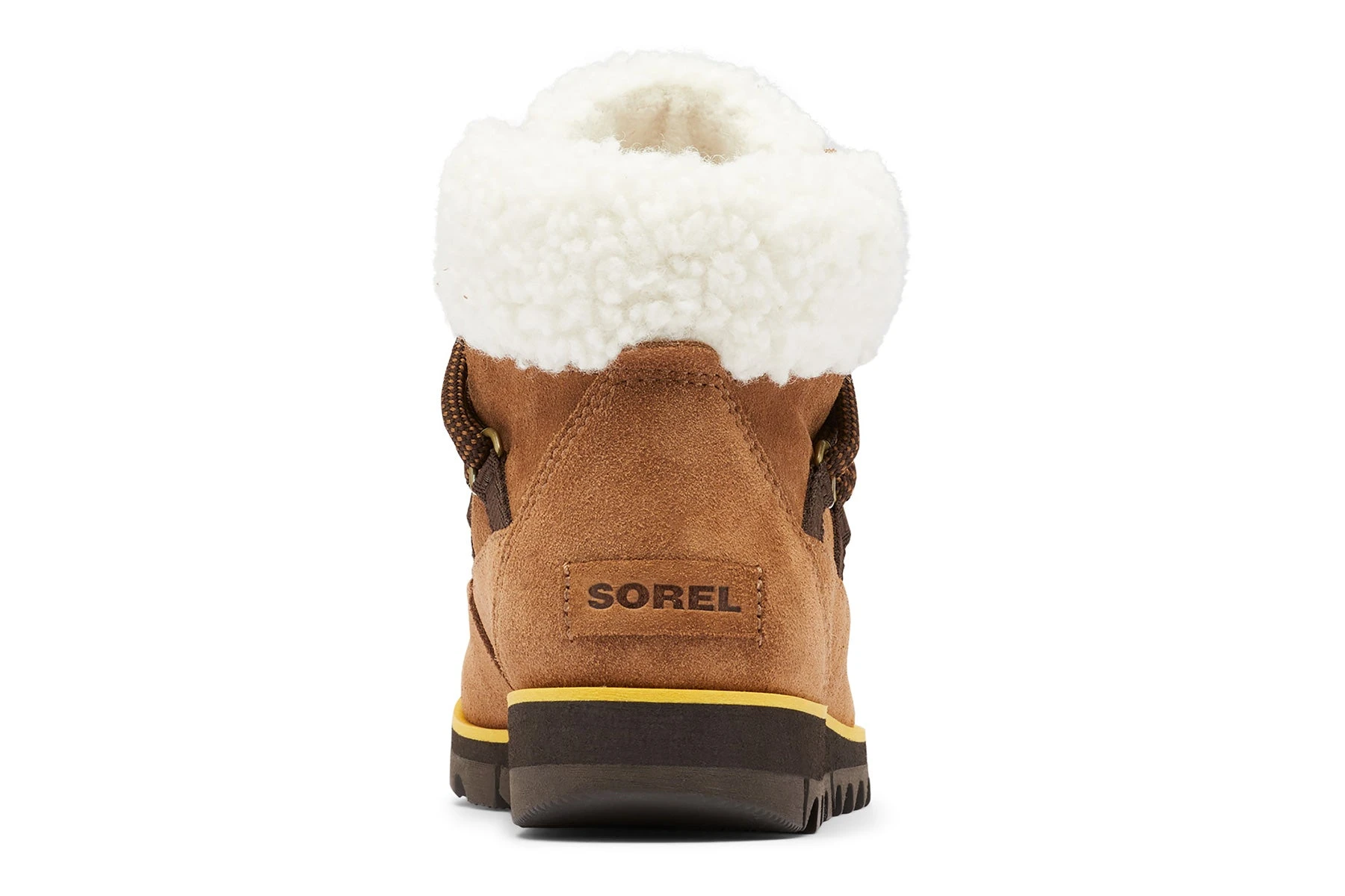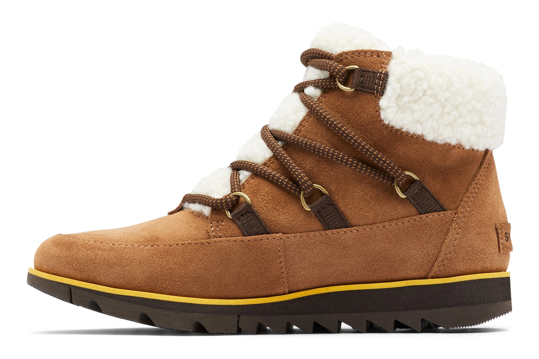 - UPPER: Beautiful new cozy upper highlighting a unique lacing detail. Waterproof suede uppers with faux shearling collar and tongue. Microfleece lining.