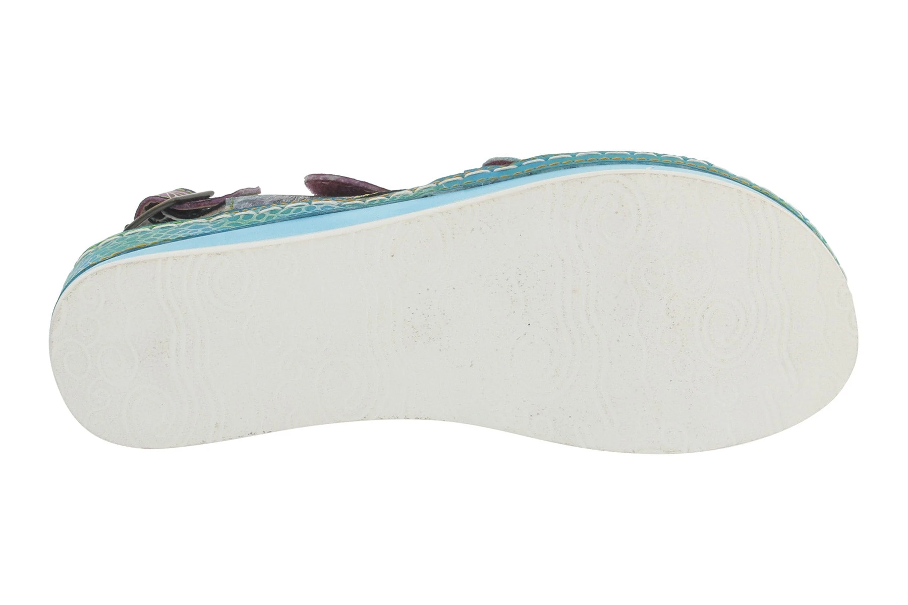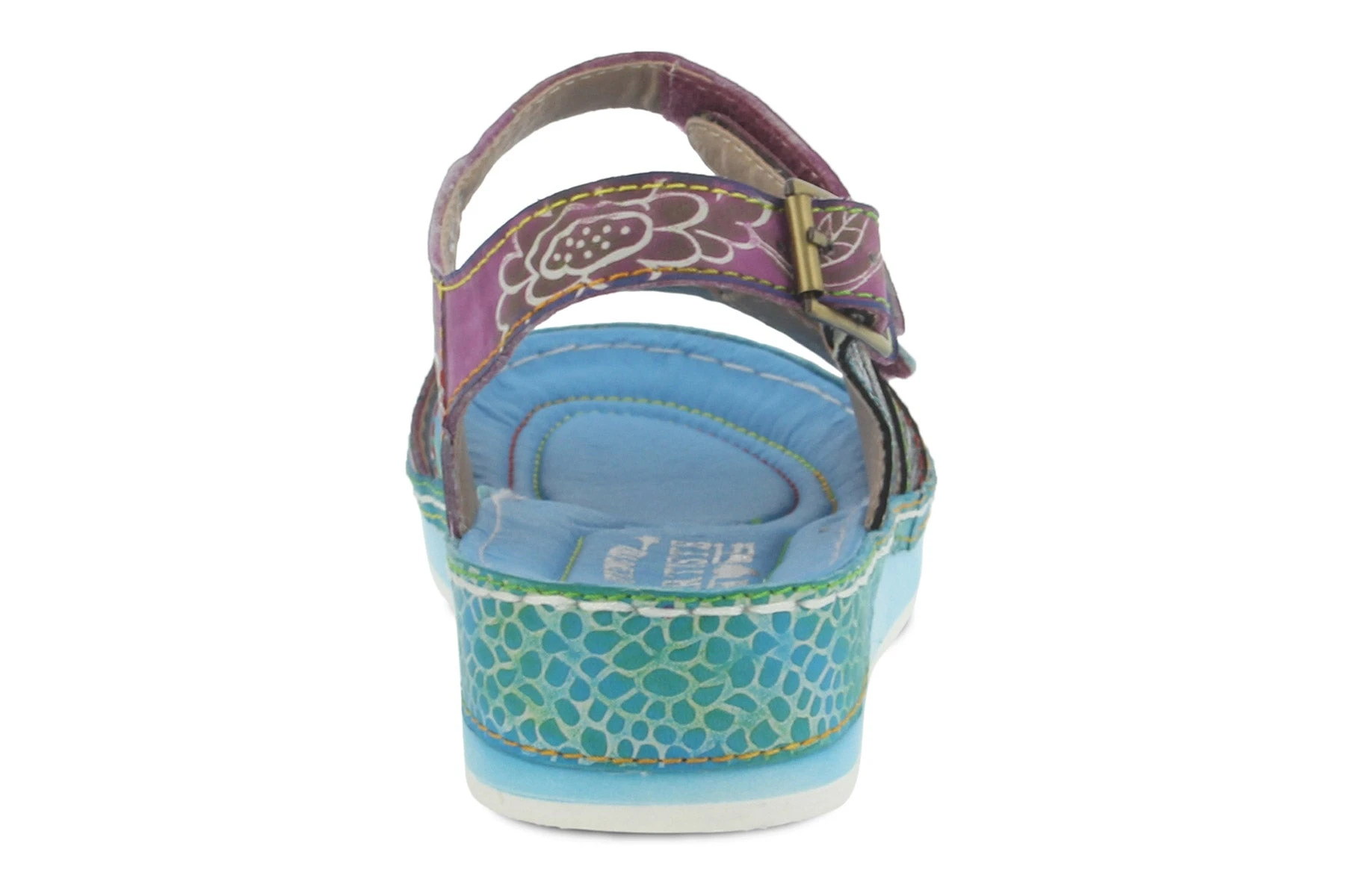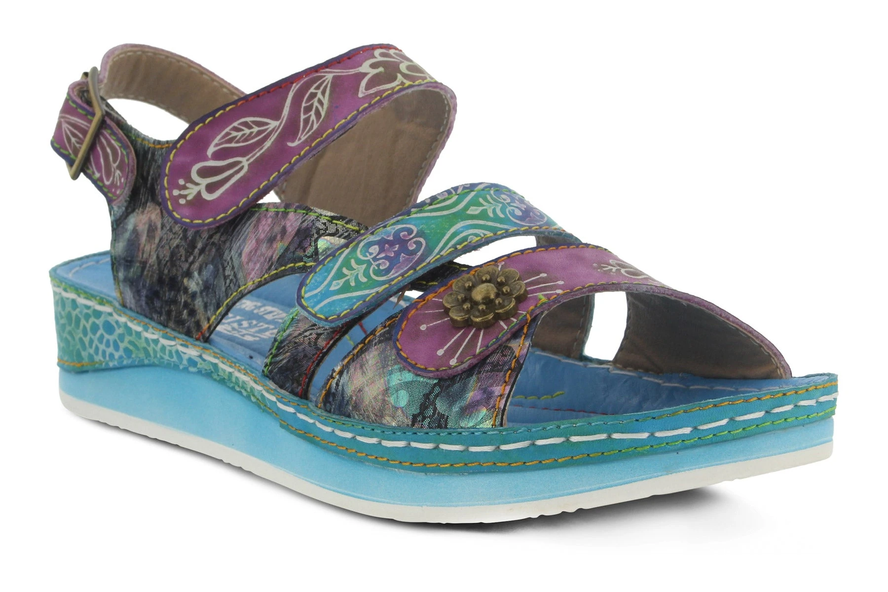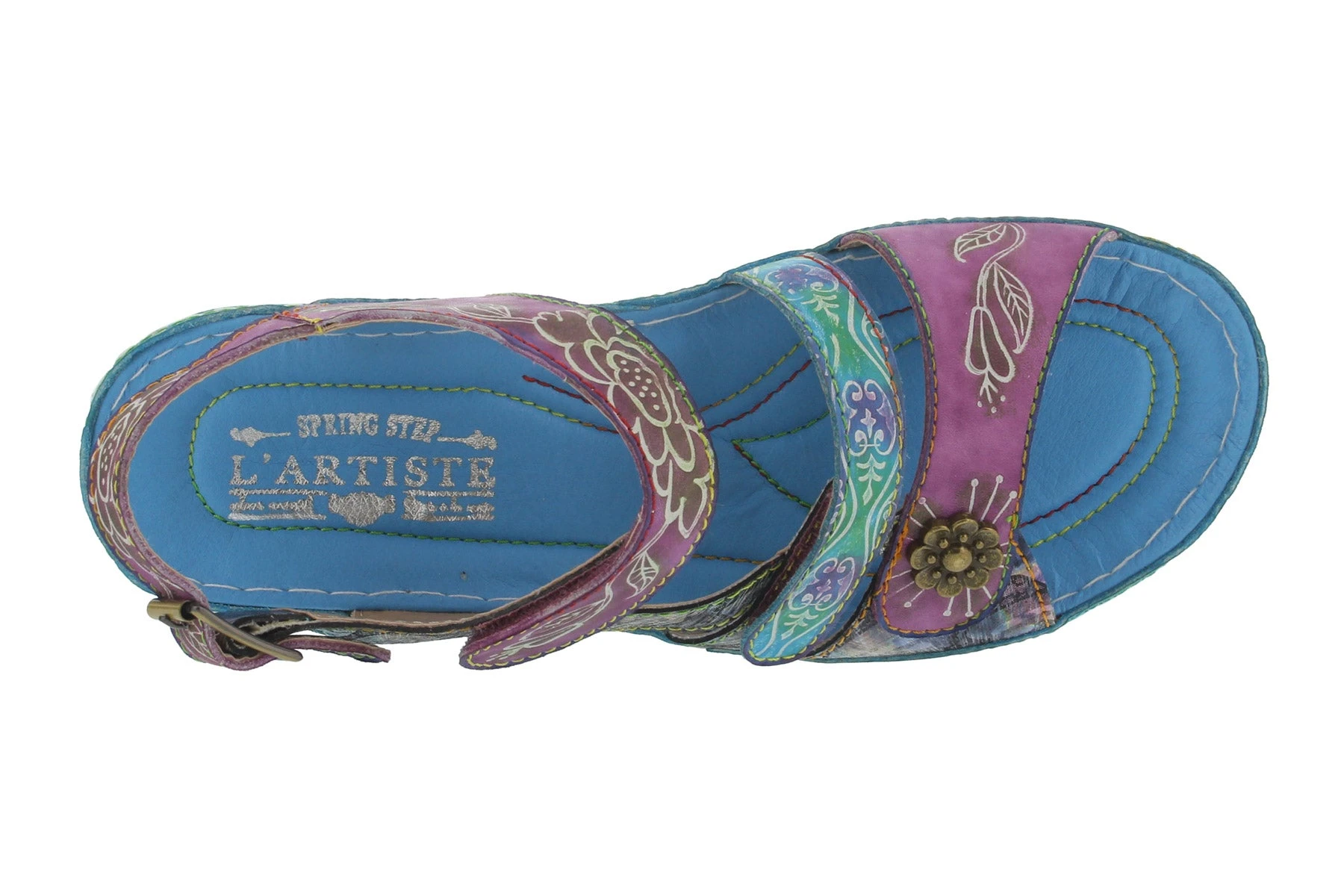 L’Artiste by Spring Step Sumacah is a bright sandal sure to stand out. Hand-painted leather, adjustable straps and a metal flower button adds style and comfort. These colorful sandals also feature a cushioned footbed, floral embossed design and sturdy PU outsole.