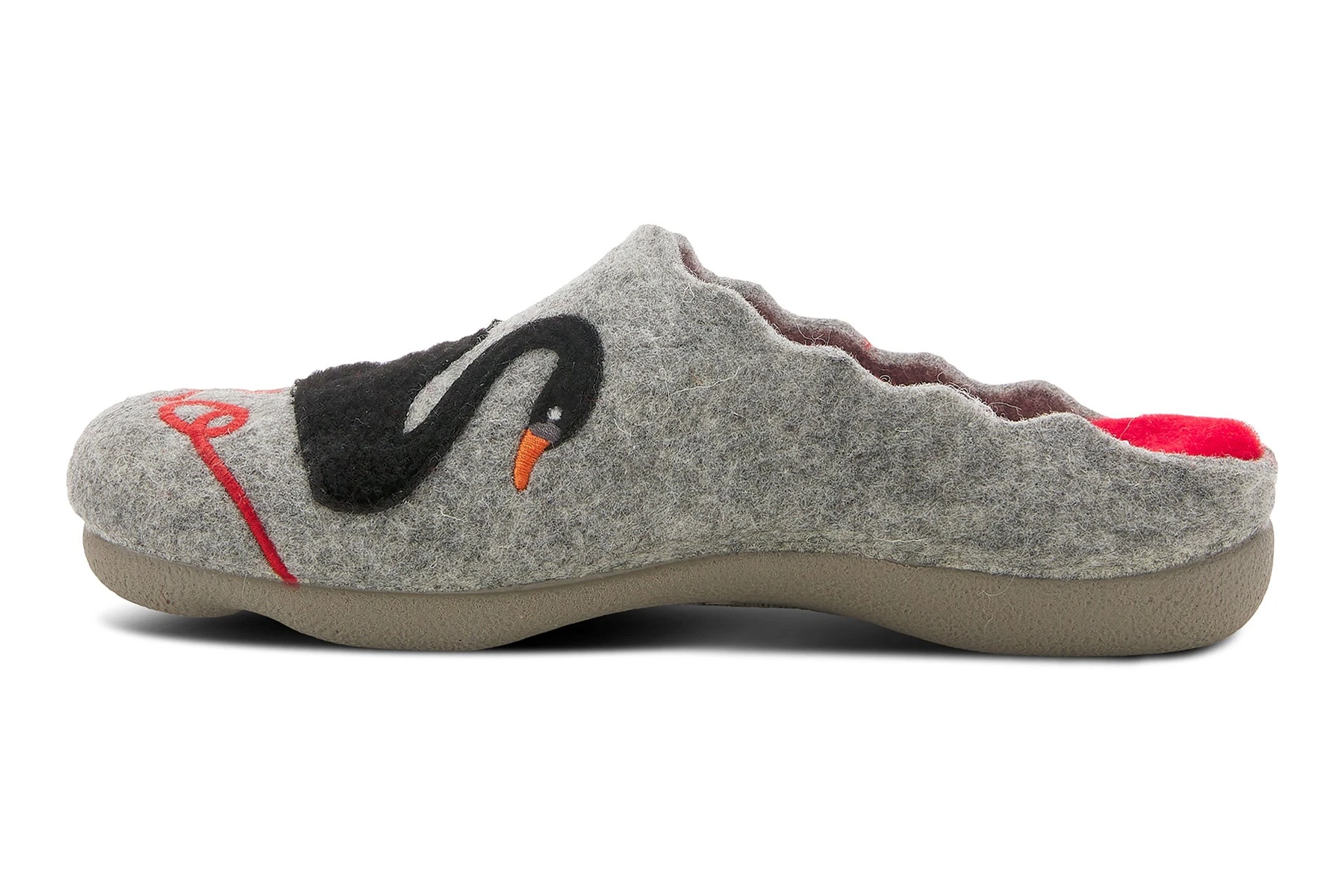 Flexus SWANLOVE LOVE is love in these indoor/outdoor slippers highlighting a black and white swan nesting upon LOVE, and when their beaks connect, a heart appears. Pure LOVE lives deep inside the heart.