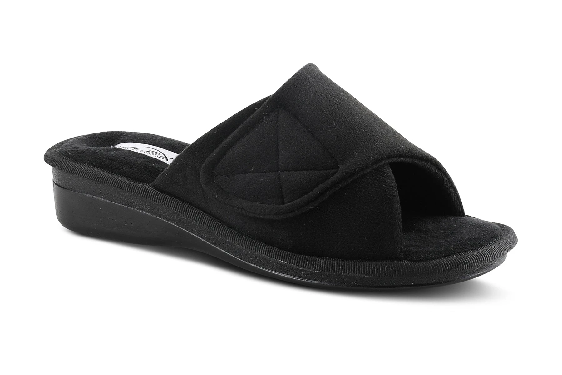Flexus SWEETDREAMS Soft, open-toe slipper with adjustable strap for perfect fit and all-day comfort.