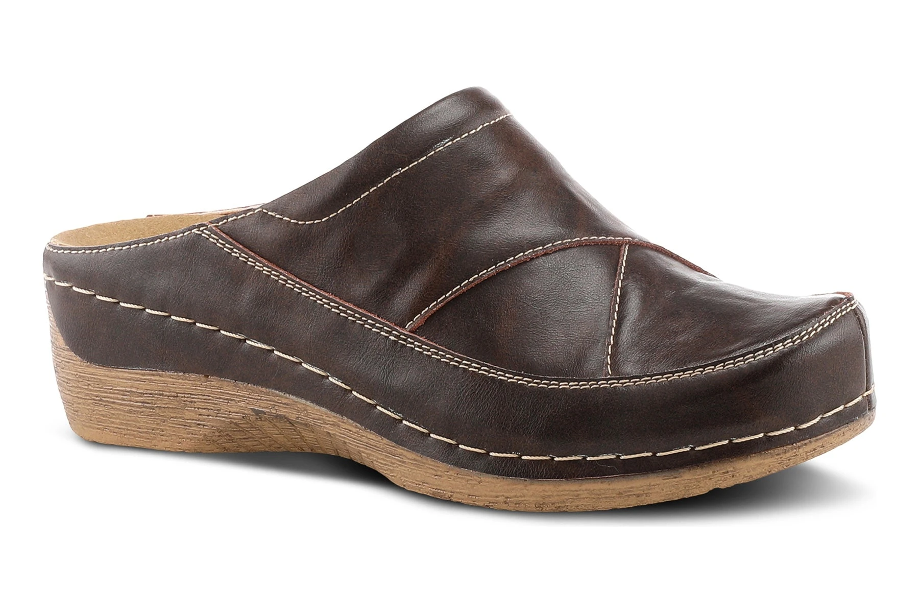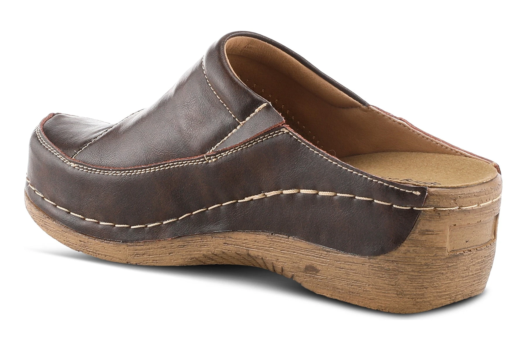 Spring Step Style: TELLY -Leather slip on clog styled with contrast stitching featuring a comfortable removable insole all on one of our most popular soles made for nonstop wear.