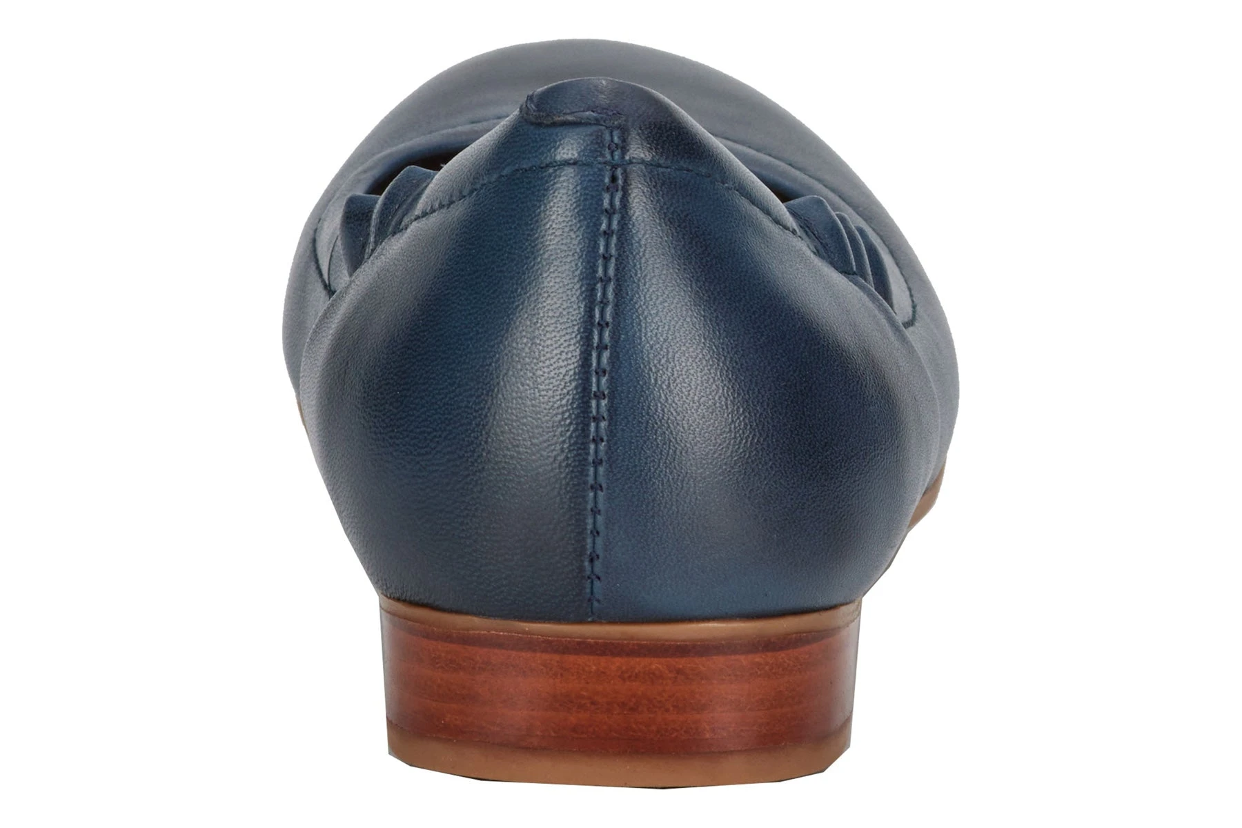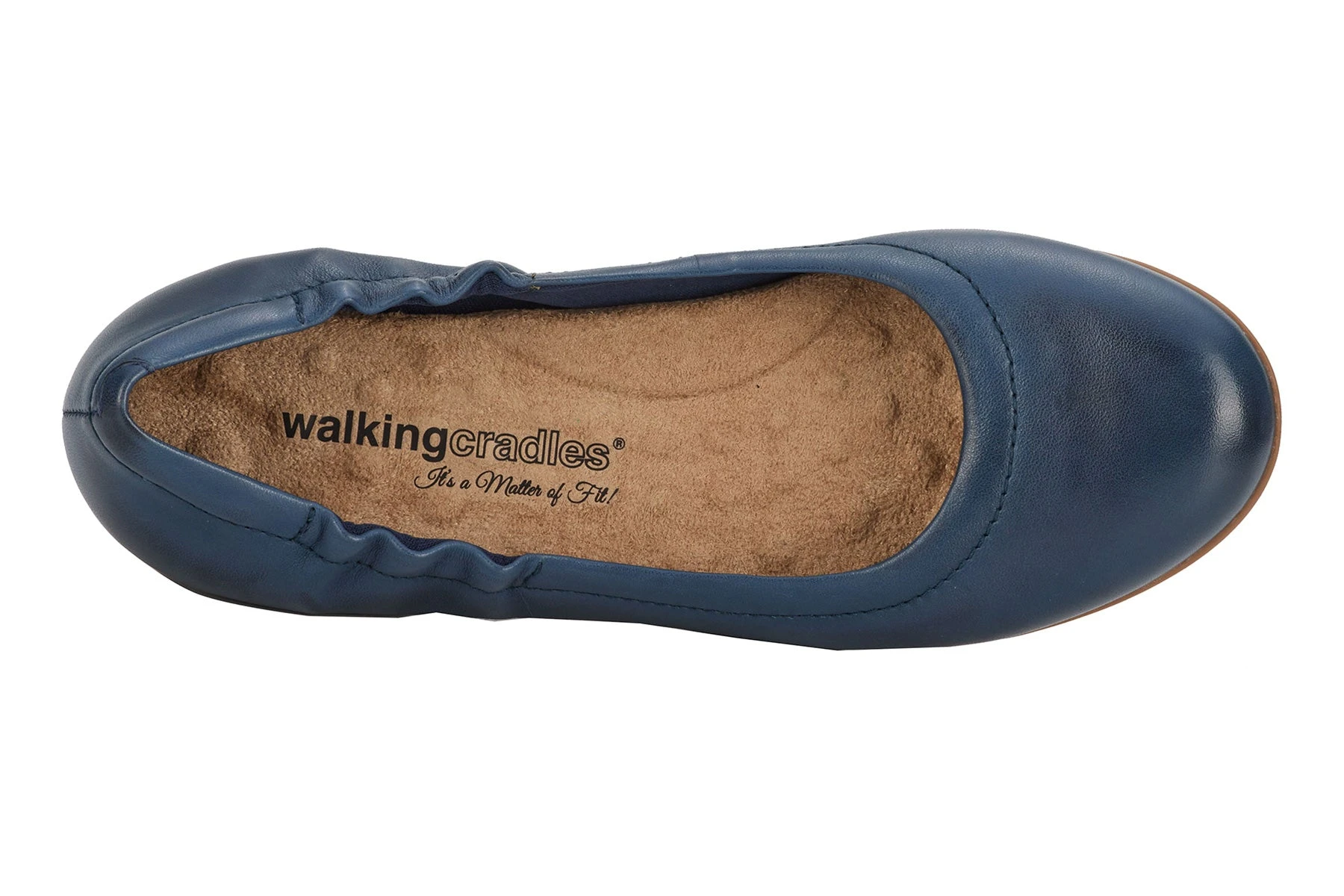 Walking Cradles Tess is a cushioned and roomy dress flat. These shoes have a soft leather upper, elasticized topline and removable dual-density foam insole. A roomy toe box, stacked block heel and slip on style creates a well-rounded and comfortable dress shoe.