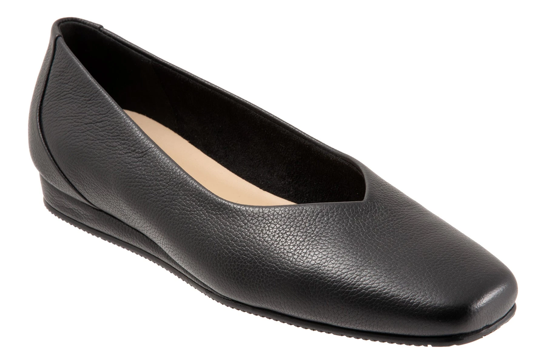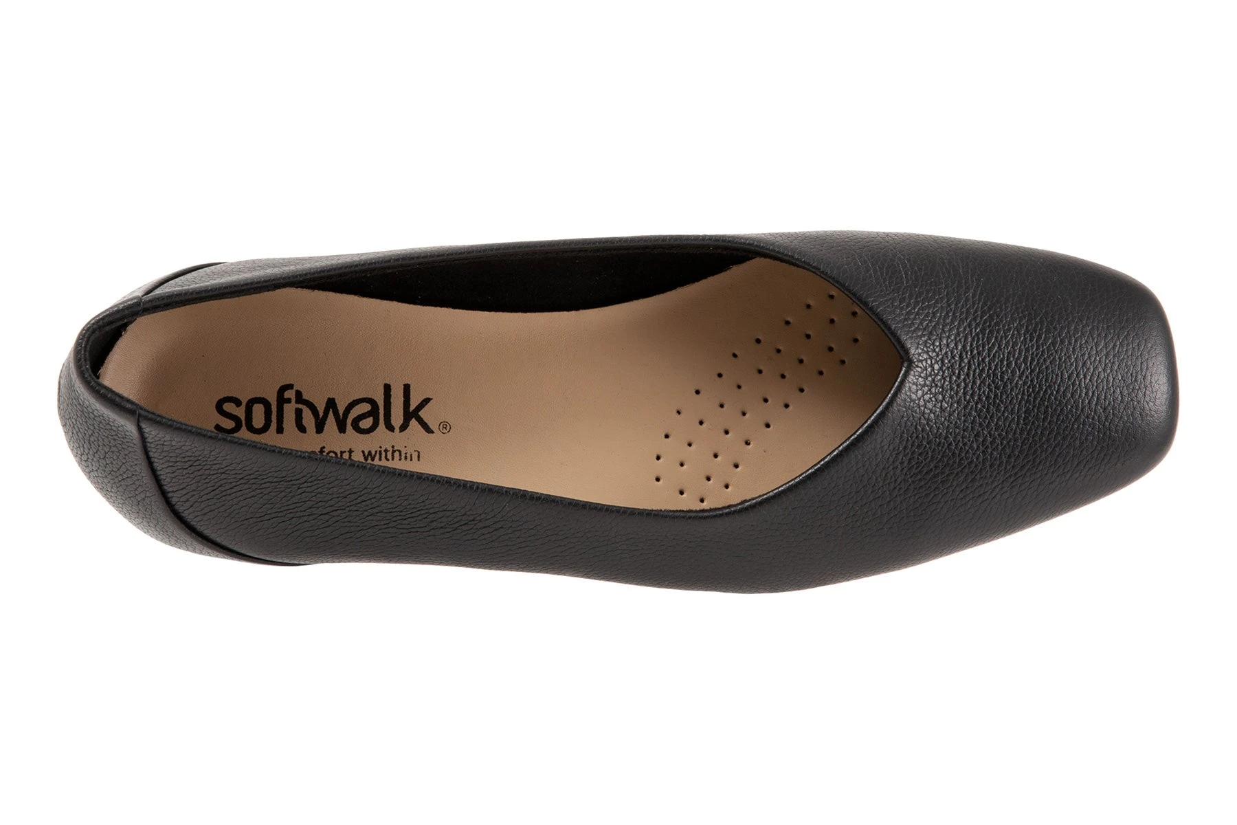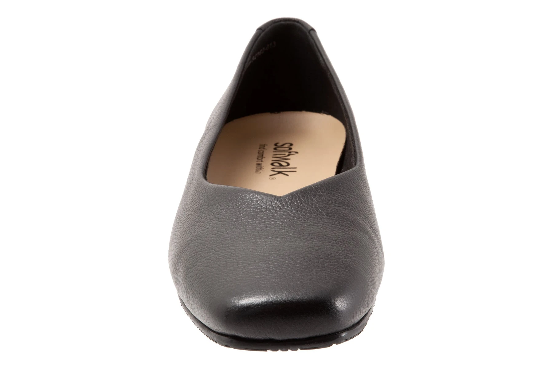 Softwalk Vellore is a fashionable slip-on flat. Features include leather or felt uppers, a removable and cushioned PU foam footbed and rubber outsole. A microfiber upper lining, square toe and V-shaped vamp detail completes these comfortable ballet flats.