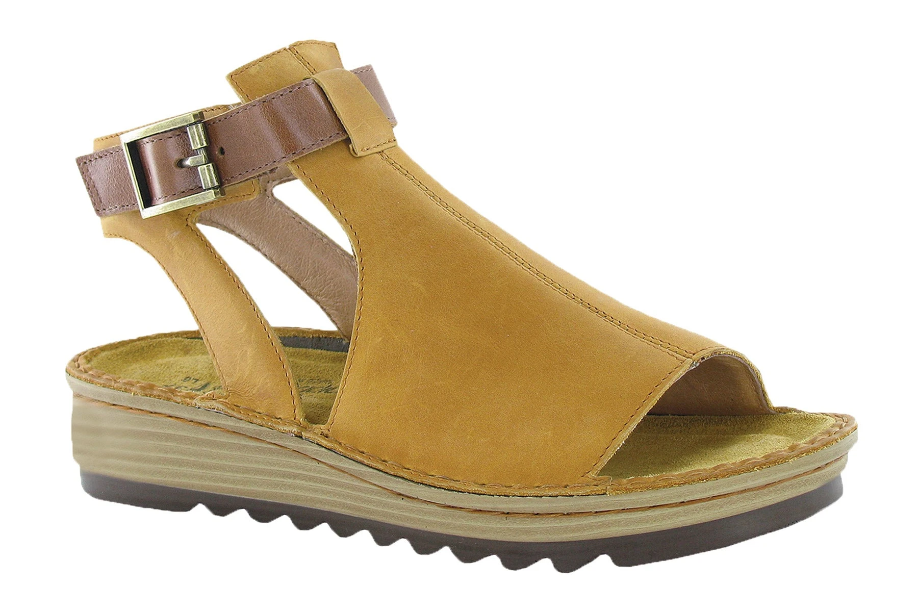 Take on warmer weather in style and comfort with the women’s Naot Verbena wedge sandal. The shock absorbent cork footbed cushions and contours the foot to deliver unmatched, all-day comfort. The lightweight PU outsole provides traction and stability.